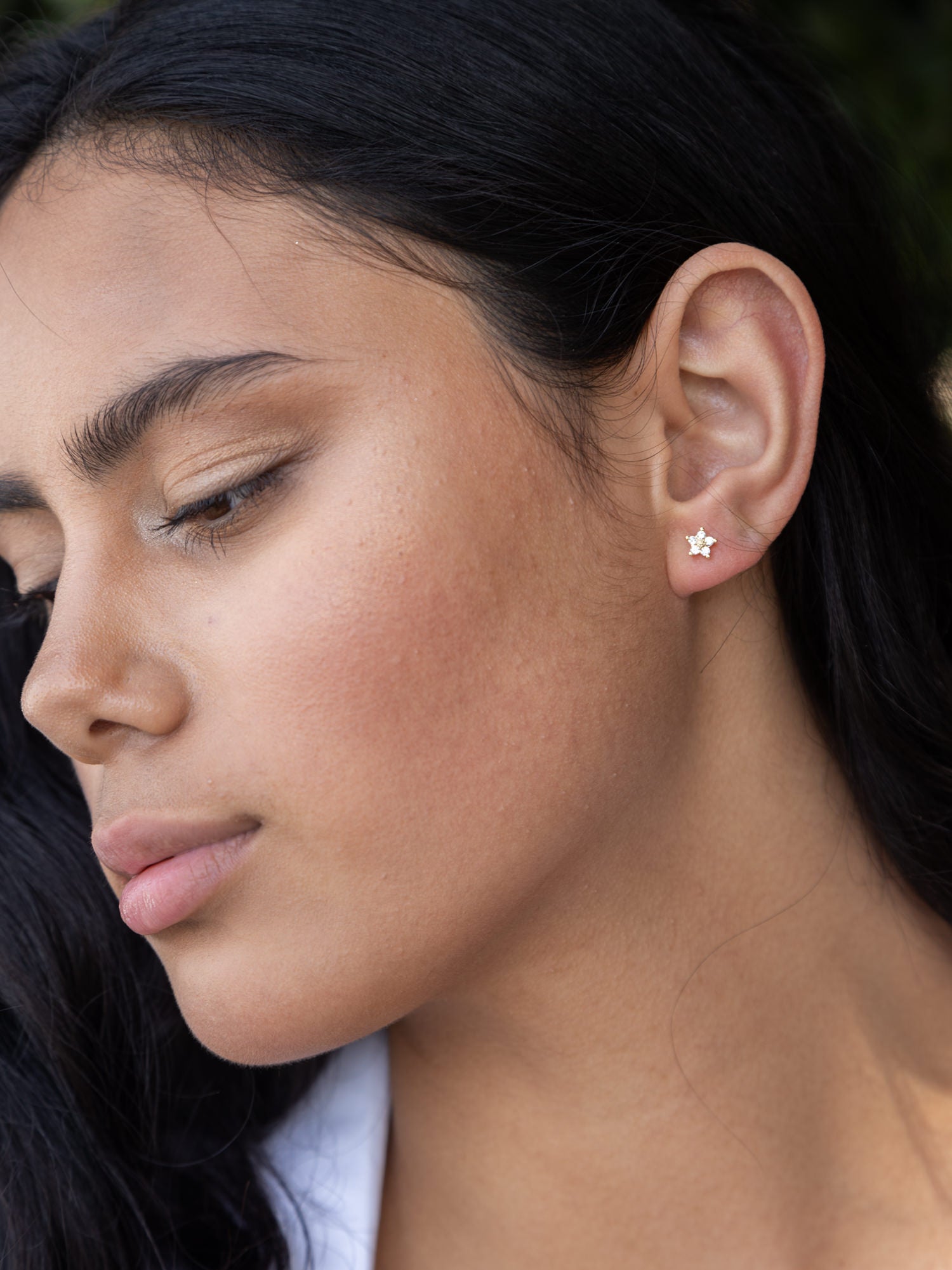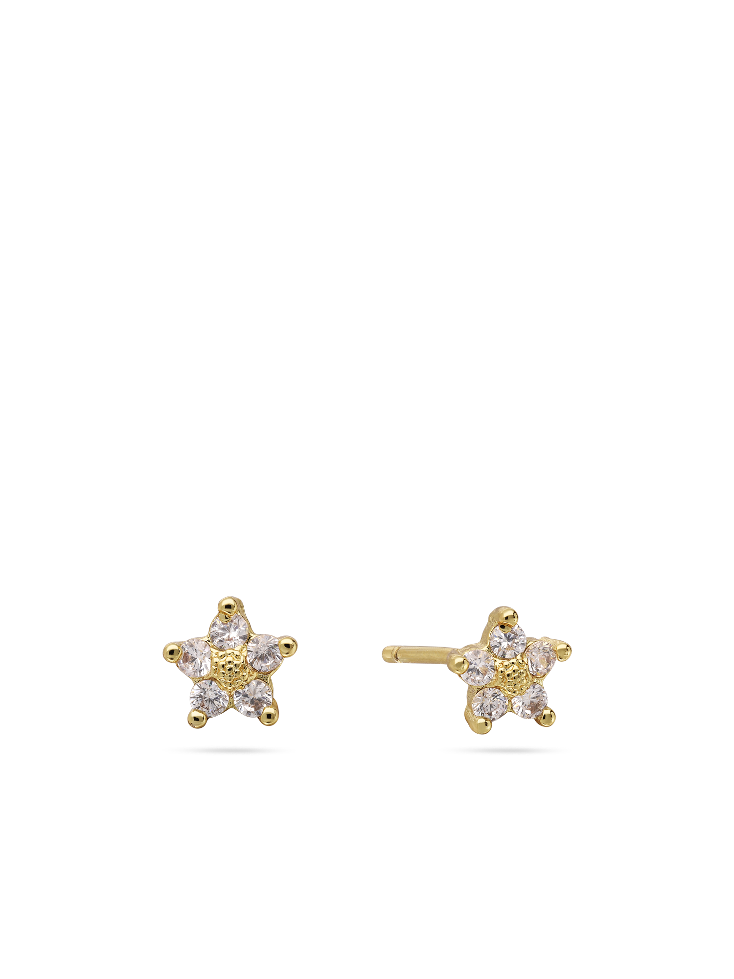 Tuerca, Bañado en oro, Zirconia cúbica artificial, Claro, Flor, Artificial, Color dorado, longitud del pendiente: 1.3 cm, ancho del pendiente: 0.5 cm, 0.88 g