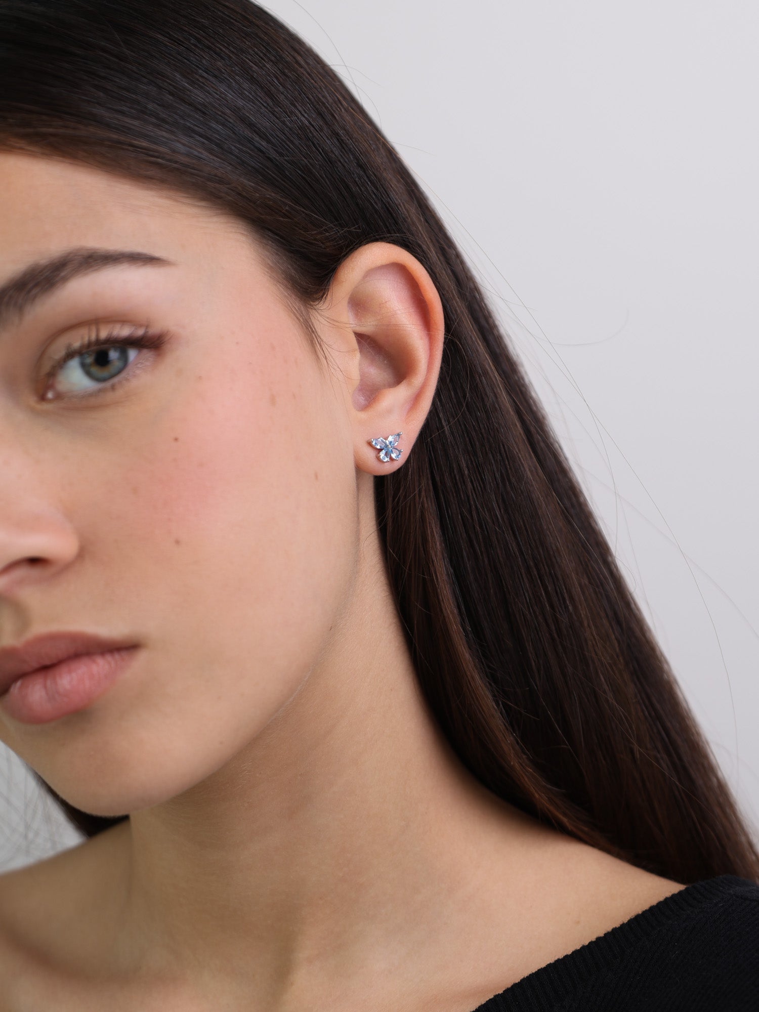 Tuerca, Plata 925 bañada en rodio, Zirconia cúbica artificial, Celeste, Mariposa, Artificial, Color plateado, ancho del pendiente: 0.9 cm, longitud del pendiente: 0.6 cm, 1.87 g