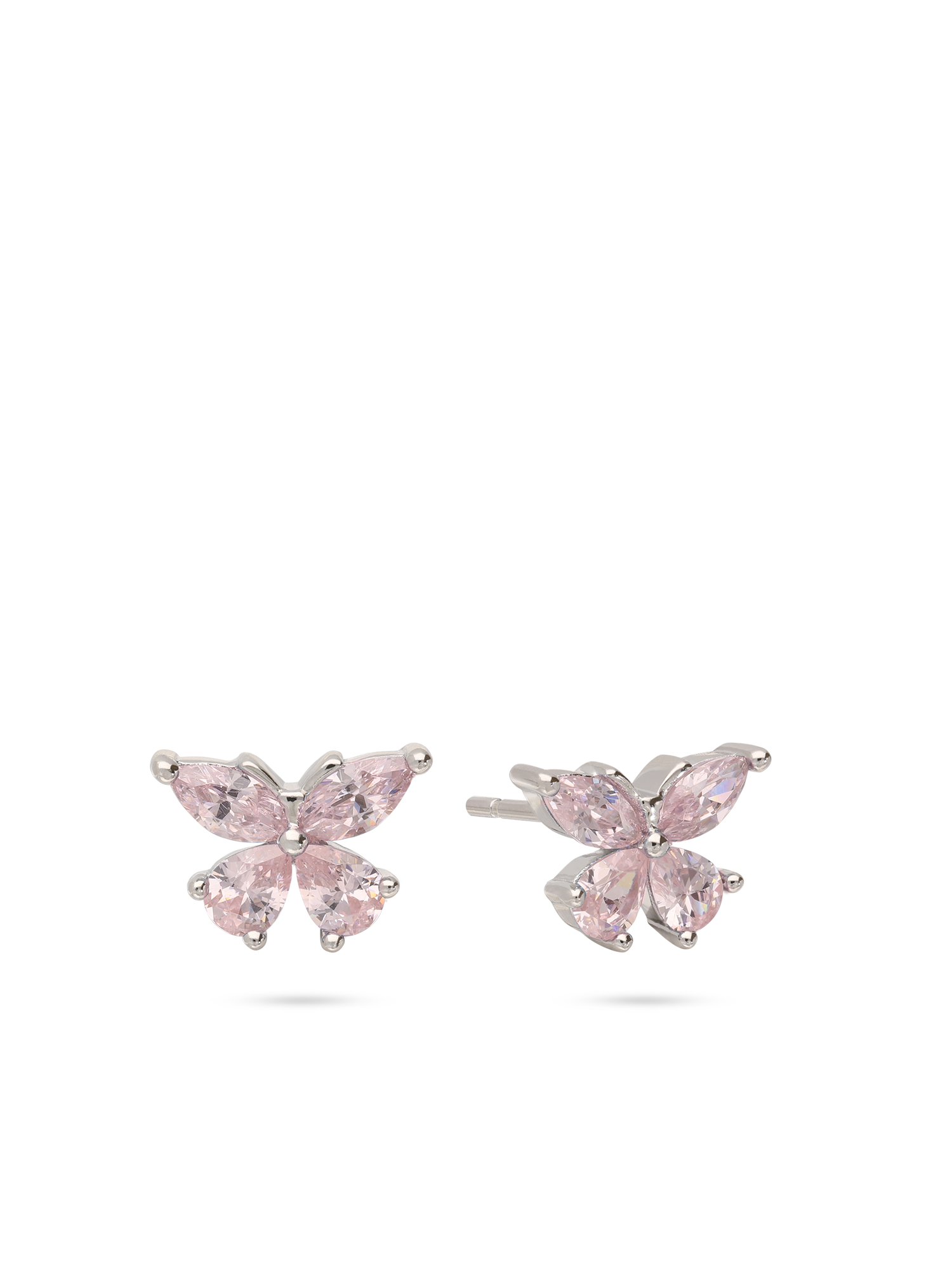 Tuerca, Plata 925 bañada en rodio, Zirconia cúbica artificial, Rosado, Mariposa, Artificial, Color plateado, longitud del pendiente: 0.5 cm, ancho del pendiente: 0.9 cm, 1.90 g