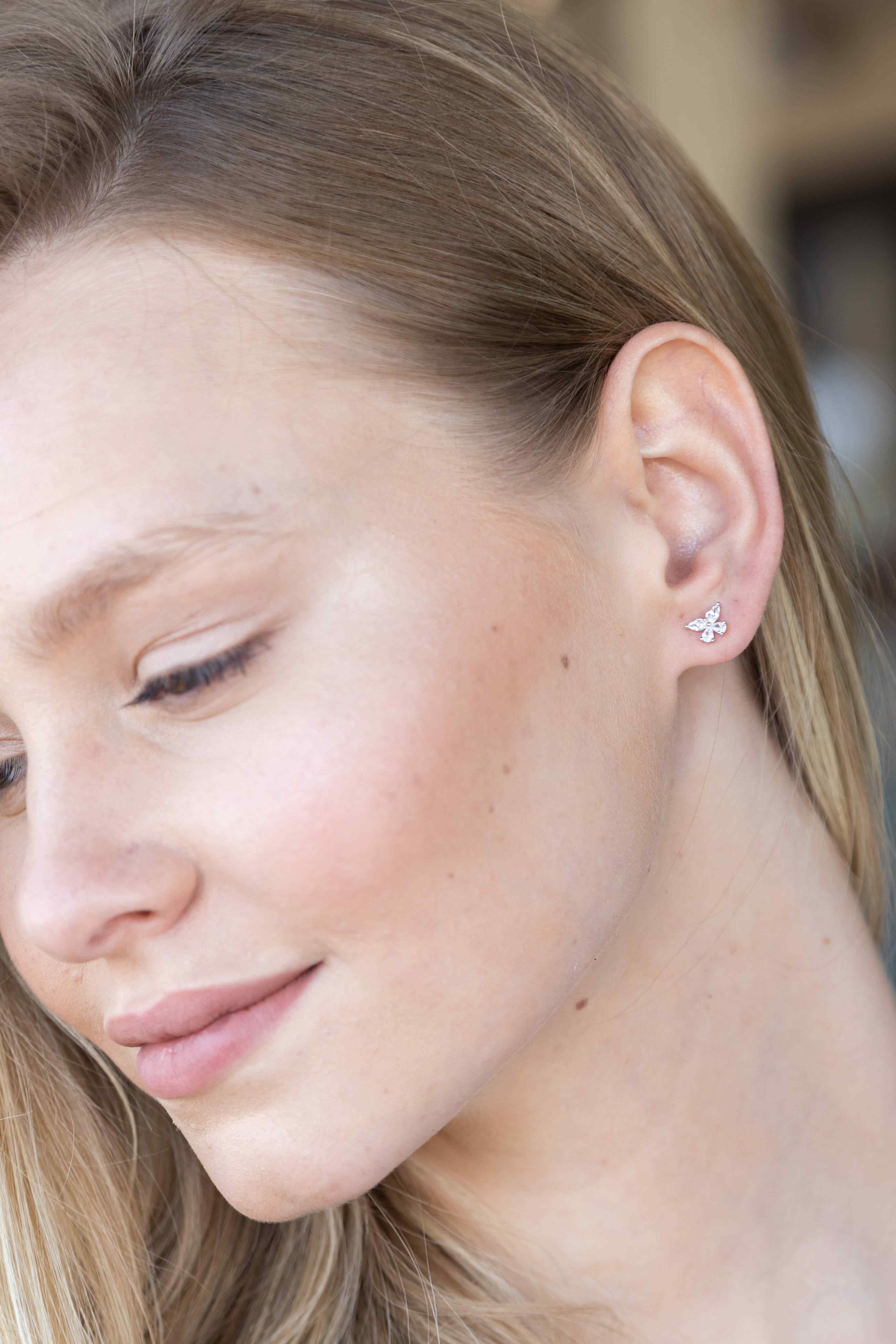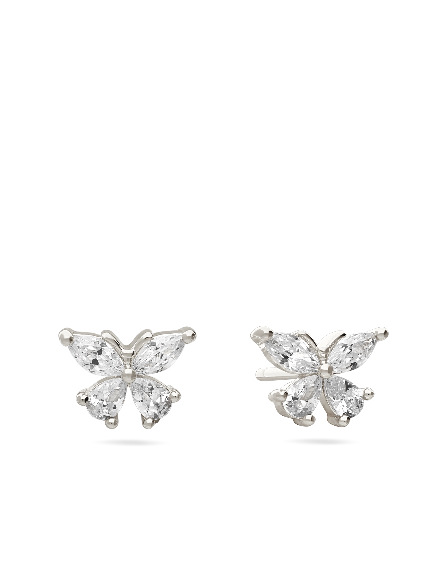 Tuerca, Plata 925 bañada en rodio, Zirconia cúbica artificial, Claro, Mariposa, Artificial, Color plateado, longitud del pendiente: 0.9 cm, ancho del pendiente: 0.6 cm, 1.31 g