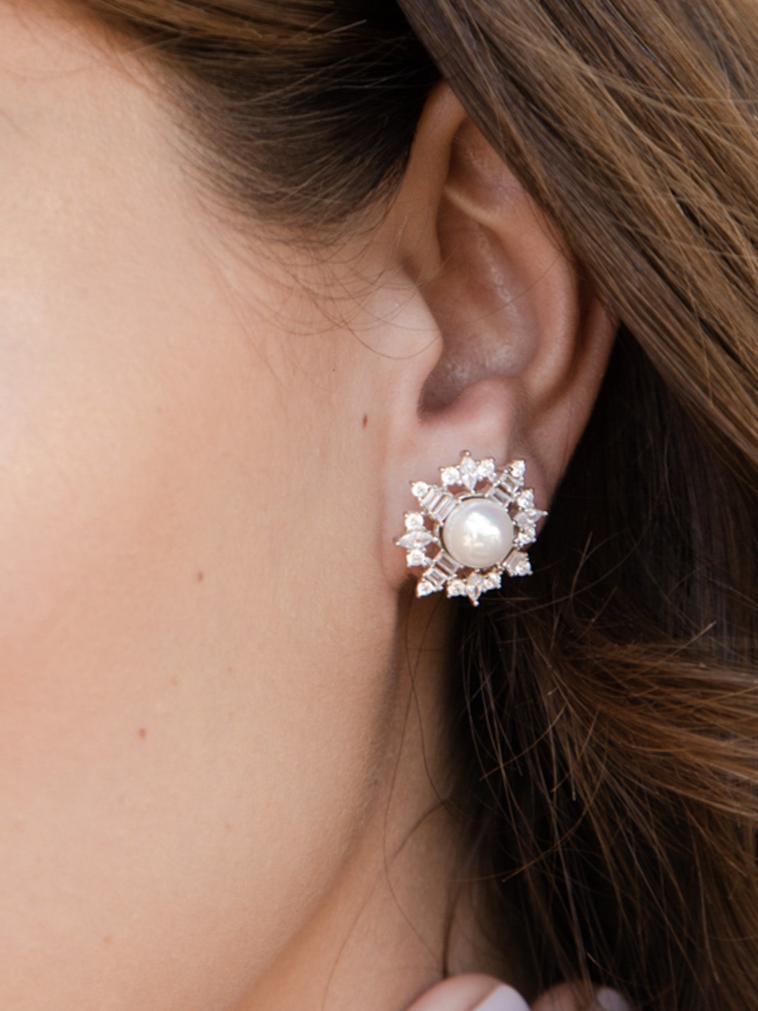 Tuerca, Plata 925 bañada en rodio, Zirconia cúbica artificial, Perla sintética, Blanco, Claro, Variedad de formas, Artificial, Color plateado, longitud del pendiente: 2.1 cm, ancho del pendiente: 2.1 cm, 6.18 g