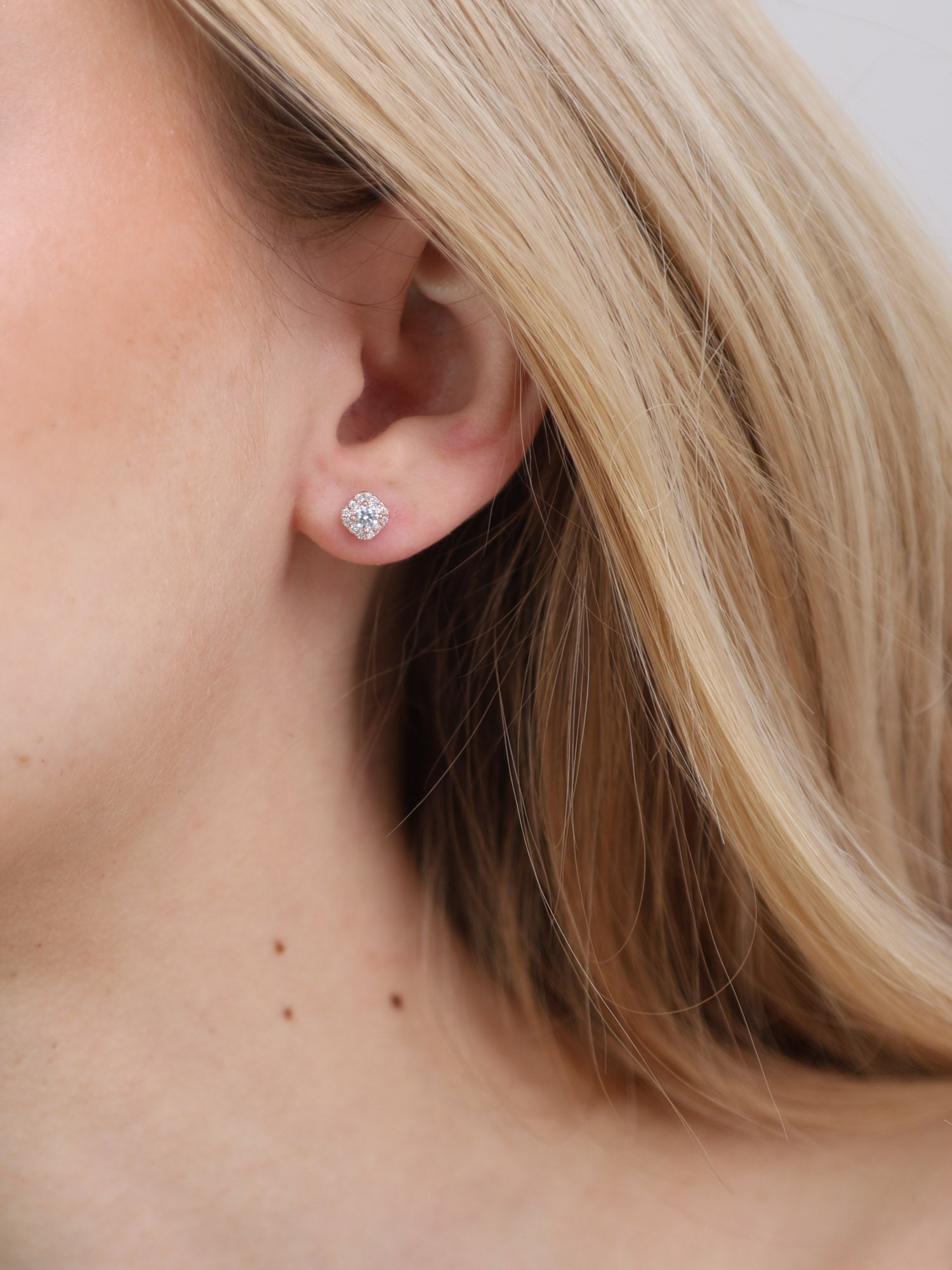 Tuerca, Bañado en oro rosa, Zirconia cúbica artificial, Claro, Cuadrado, Artificial, Oro rosa, ancho del pendiente: 0.5 cm, longitud del pendiente: 0.5 cm, 0.98 g