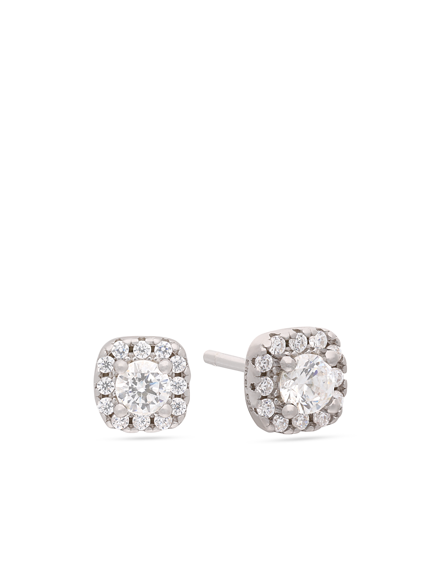 Tuerca, Plata 925 bañada en rodio, Zirconia cúbica artificial, Claro, Cuadrado, Artificial, Color plateado, ancho del pendiente: 0.5 cm, longitud del pendiente: 0.5 cm, 1.19 g