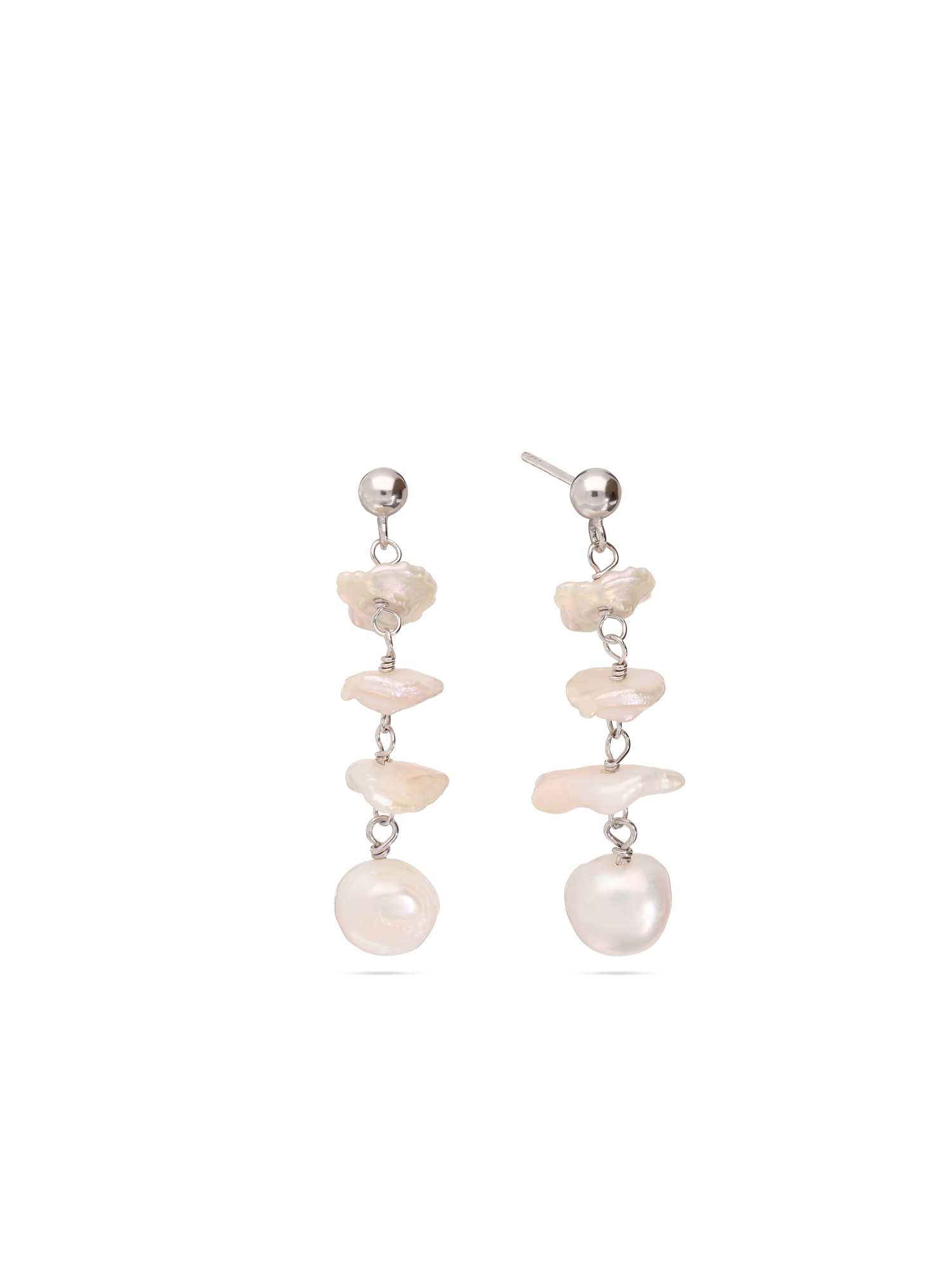 Gotas, Plata 925 bañada en rodio, Perla cultivada, Blanco, Variedad de formas, Color plateado, longitud del pendiente: 4.5 cm, ancho del pendiente: 1.0 cm, 4.74 g