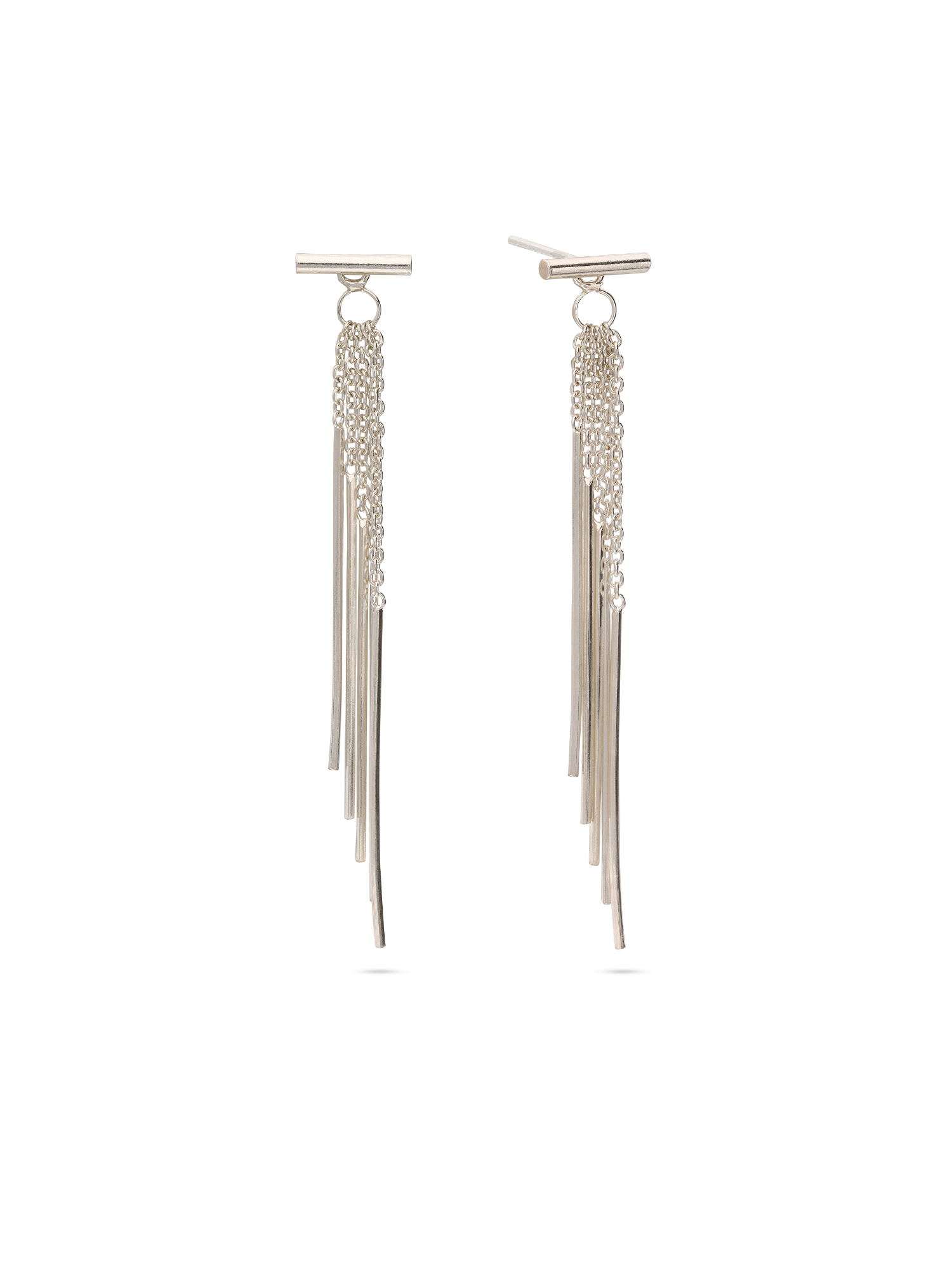 Gotas, Plata de Ley 925, Sin piedra, Sin color, Forma no específica, Color plateado, ancho del pendiente: 0.5 cm, longitud del pendiente: 7.0 cm, 4.78 g