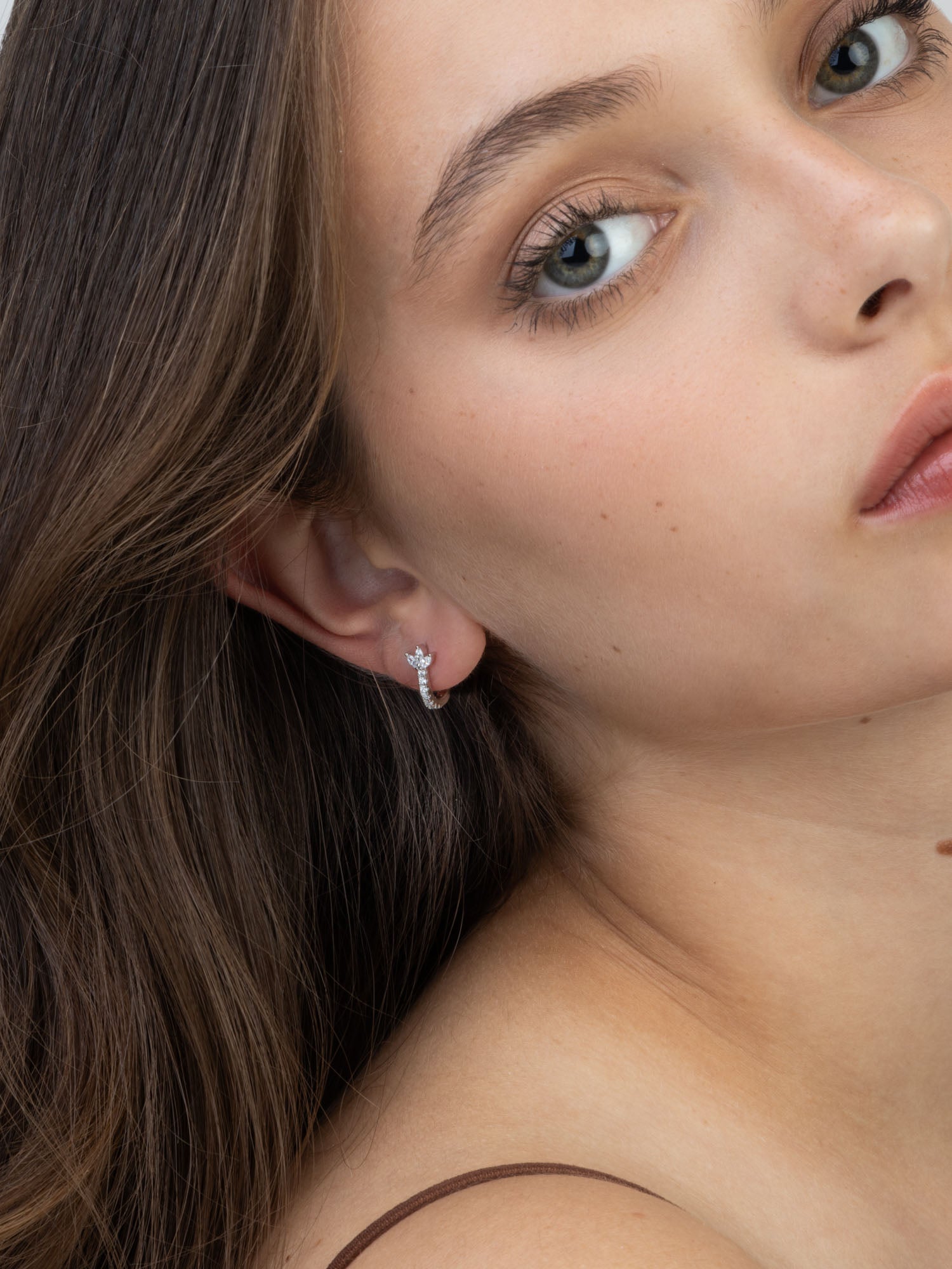 Aros, Plata 925 bañada en rodio, Zirconia cúbica artificial, Claro, Flor, Artificial, Color plateado, longitud del pendiente: 1.4 cm, ancho del pendiente: 0.5 cm, 1.81 g