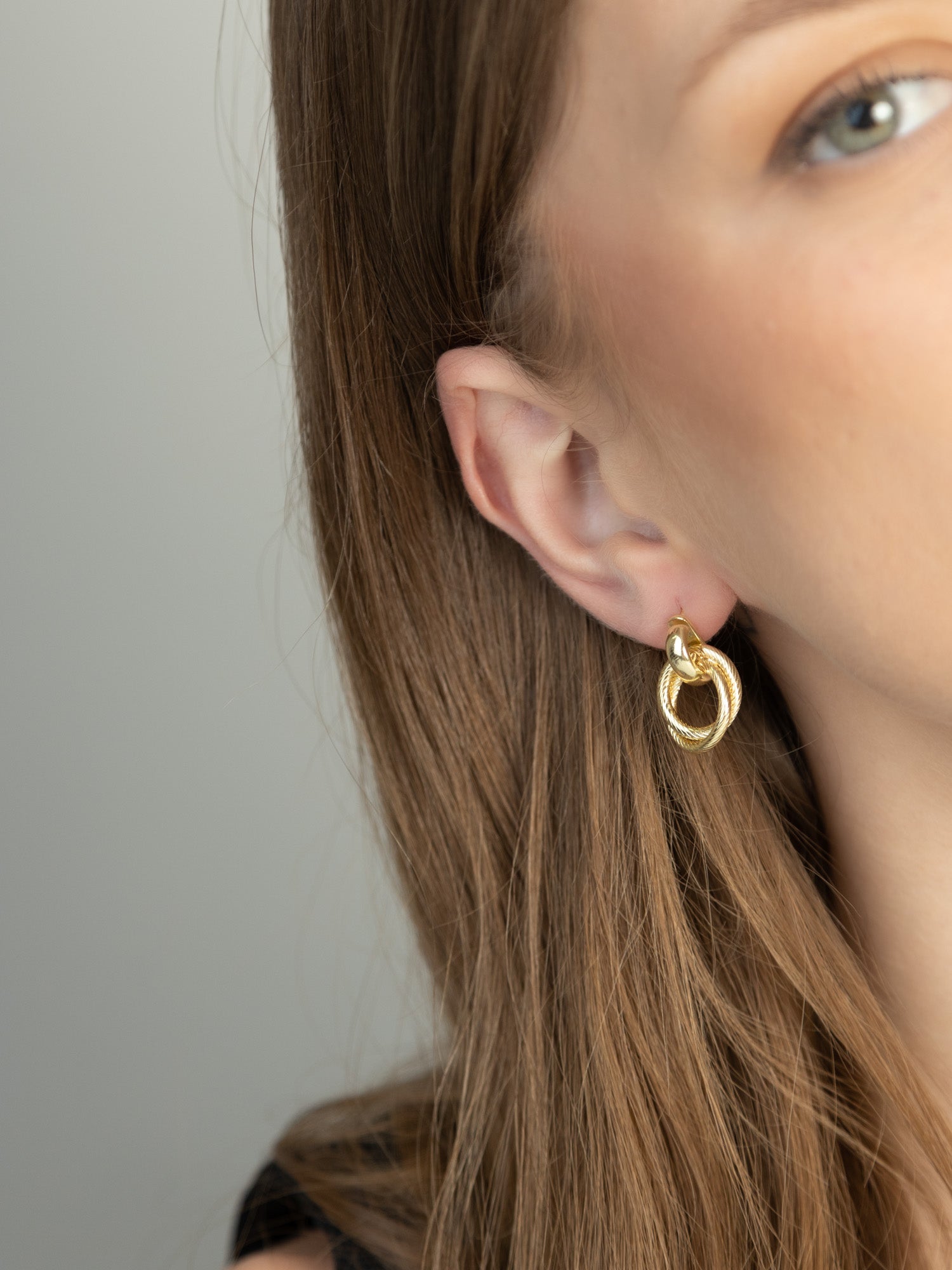Gotas, Bañado en oro, Sin piedra, Sin color, Círculo, Color dorado, longitud del pendiente: 1.8 cm, ancho del pendiente: 1.5 cm, 6.57 g