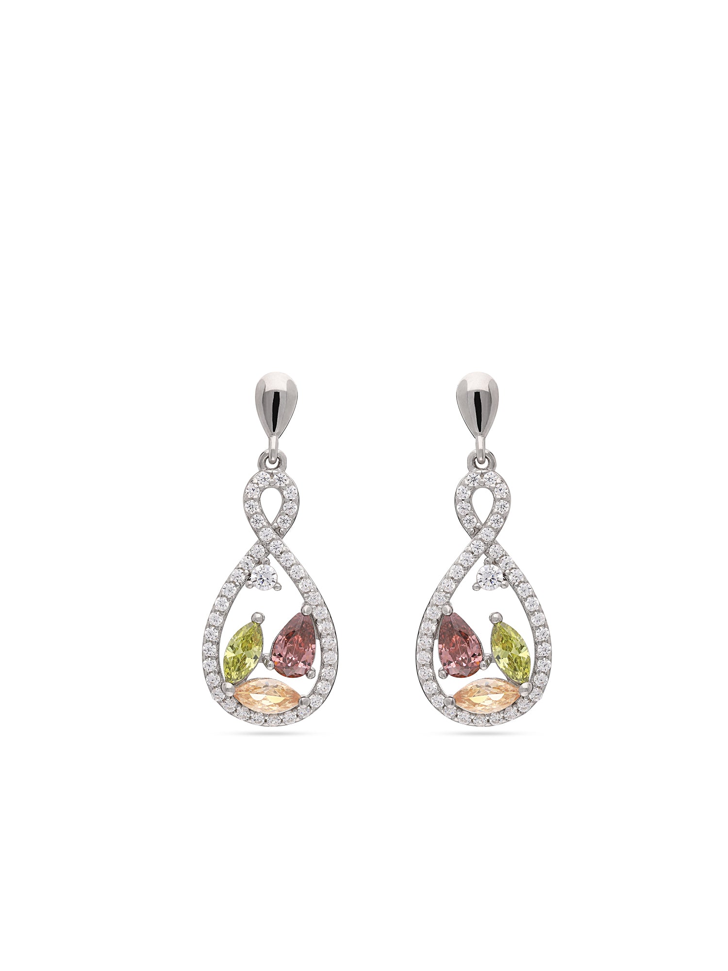 Gotas, Plata 925 bañada en rodio, Zirconia cúbica artificial, Multicolor, Lágrima, Artificial, Color plateado, longitud del pendiente: 2.0 cm, ancho del pendiente: 1.0 cm, 2.90 g