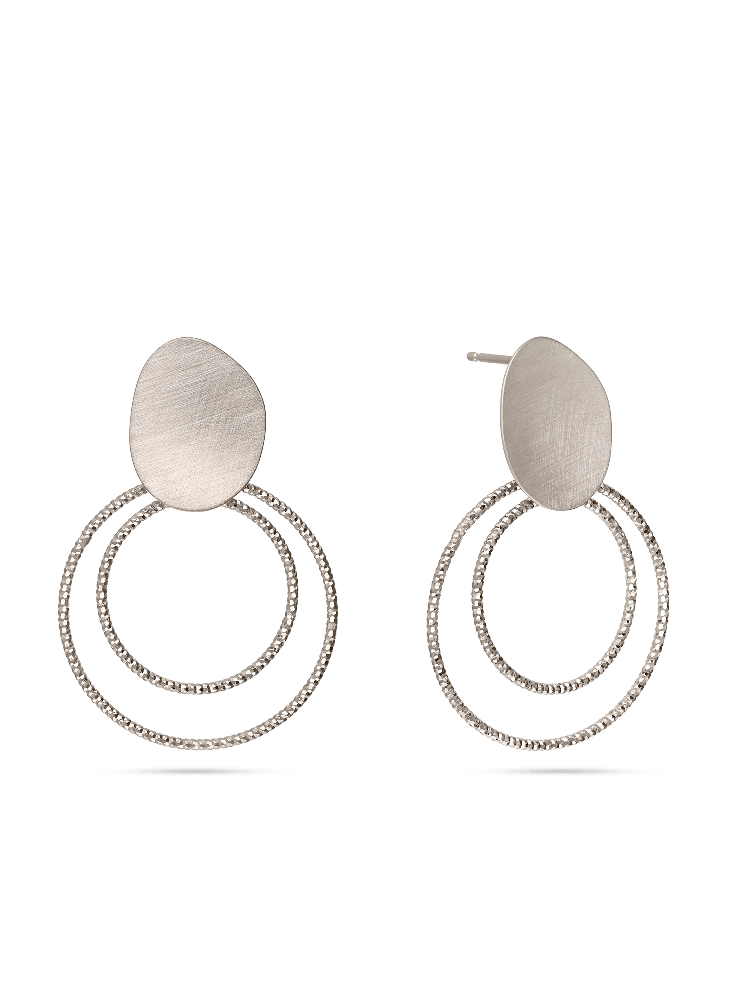 Gotas, Plata 925 bañada en rodio, Sin piedra, Sin color, Círculo, Color plateado, longitud del pendiente: 3.6 cm, ancho del pendiente: 2.5 cm, 3.48 g