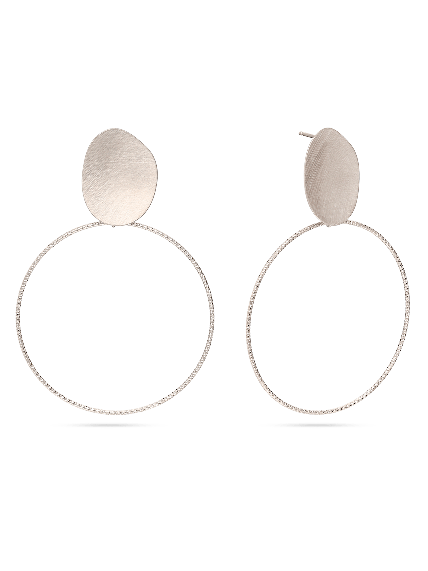 Gotas, Plata 925 bañada en rodio, Sin piedra, Sin color, Círculo, Color plateado, longitud del pendiente: 6.5 cm, ancho del pendiente: 4.5 cm, 4.86 g