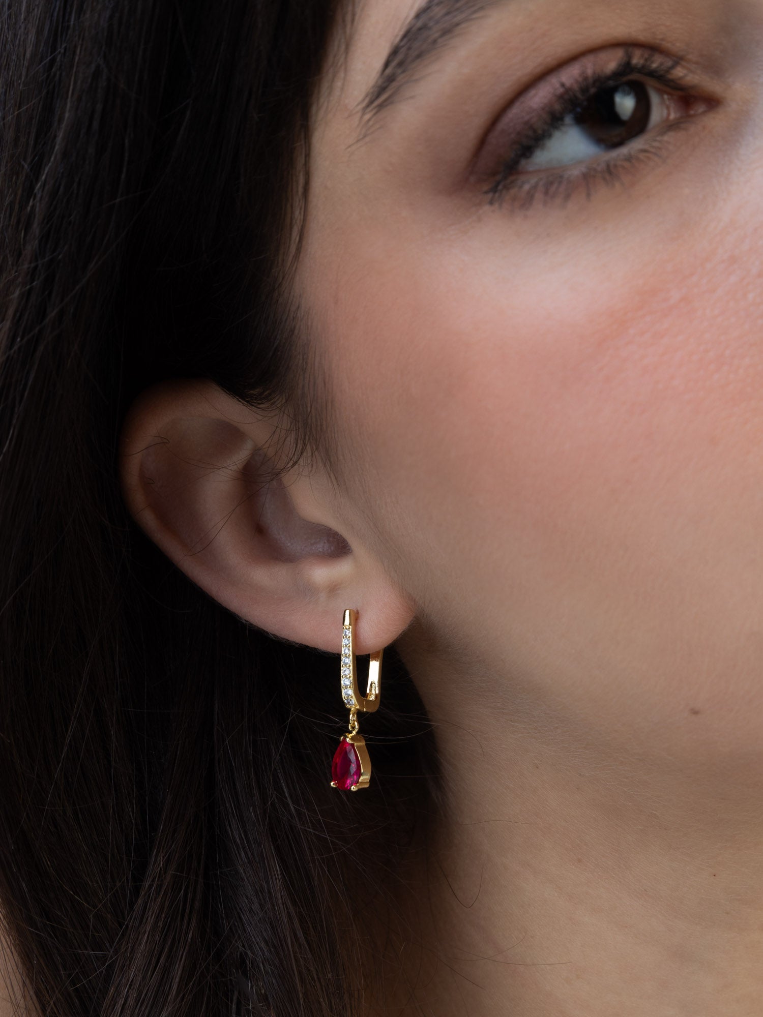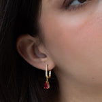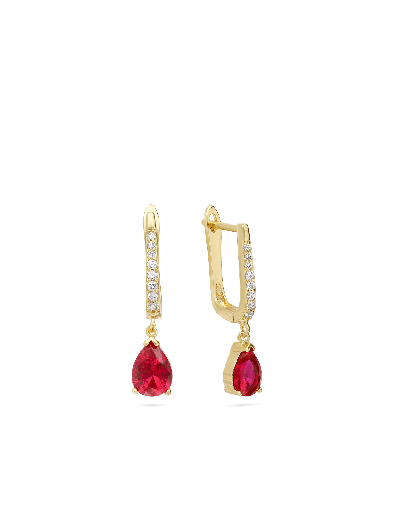 Aros, Bañado en oro, Zirconia cúbica artificial, Rojo, Claro, Lágrima, Artificial, Color dorado, longitud del pendiente: 2.7 cm, ancho del pendiente: 0.6 cm, 3.20 g
