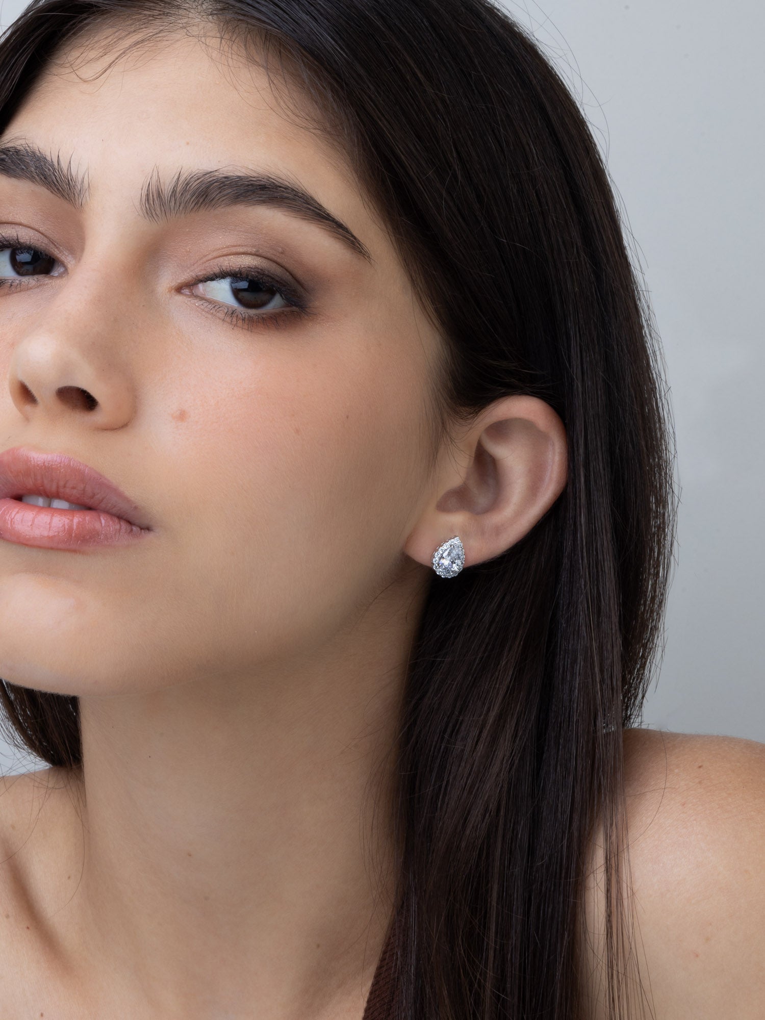 Tuerca, Plata 925 bañada en rodio, Zirconia cúbica artificial