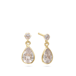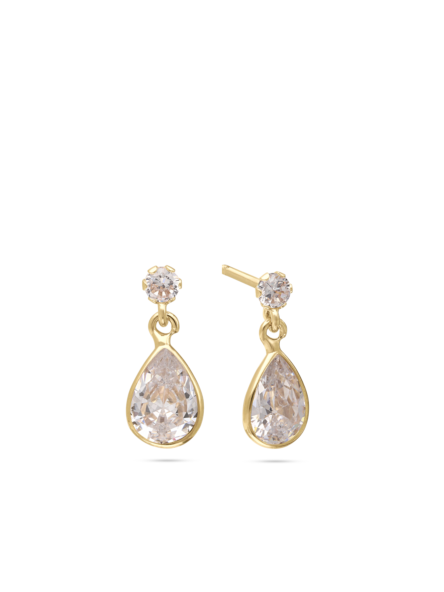 Tuerca, Oro de 9 quilates, Zirconia cúbica artificial, Claro, Lágrima, Círculo, Artificial, oro amarillo de 9k, longitud del pendiente: 1.3 cm, ancho del pendiente: 0.5 cm, 1.10 g