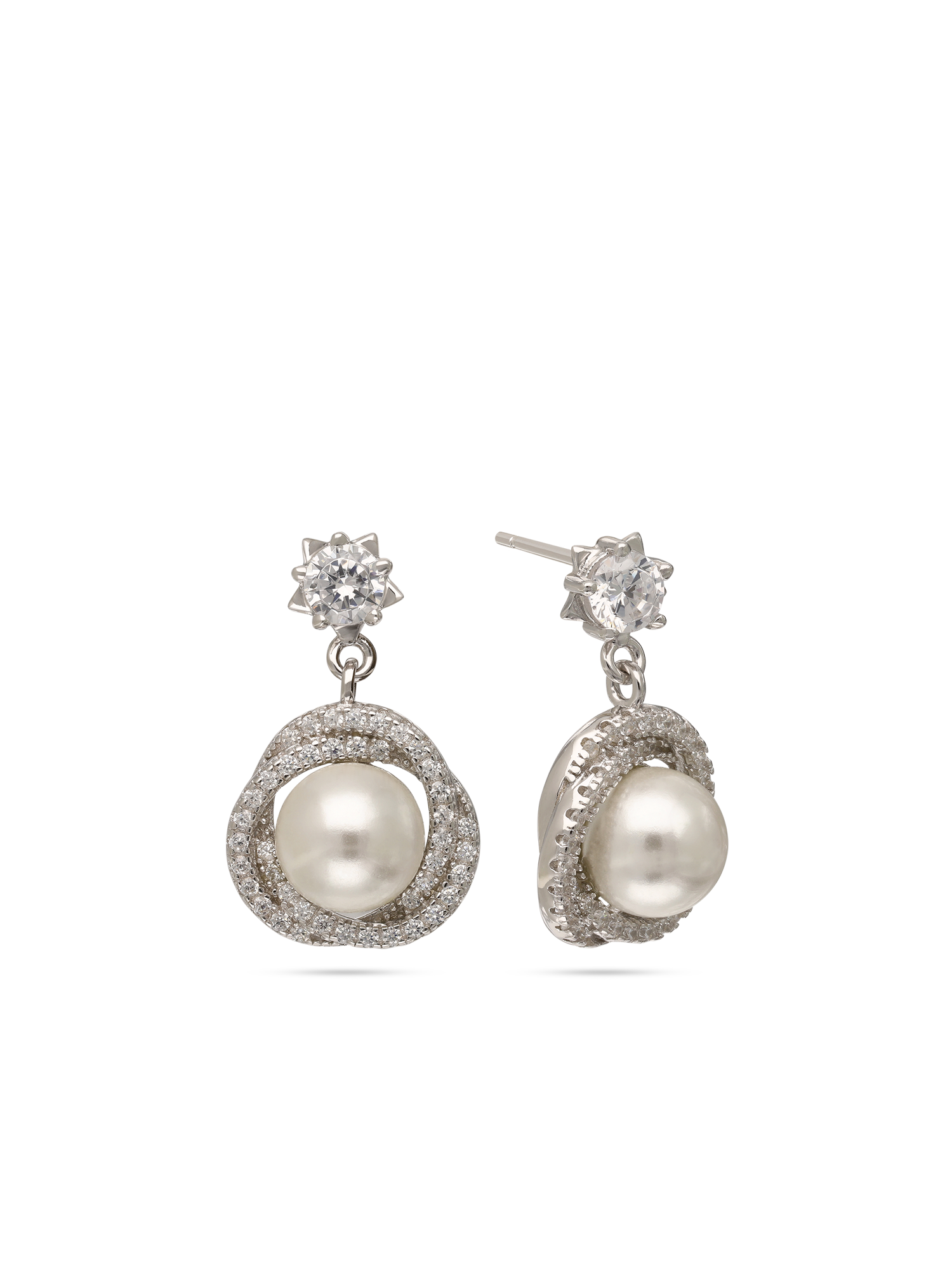 Gotas, Plata 925 bañada en rodio, Zirconia cúbica artificial, Perla cultivada, Blanco, Claro, Círculo, Artificial, Color plateado, longitud del pendiente: 2.1 cm, ancho del pendiente: 1.2 cm, 5.82 g
