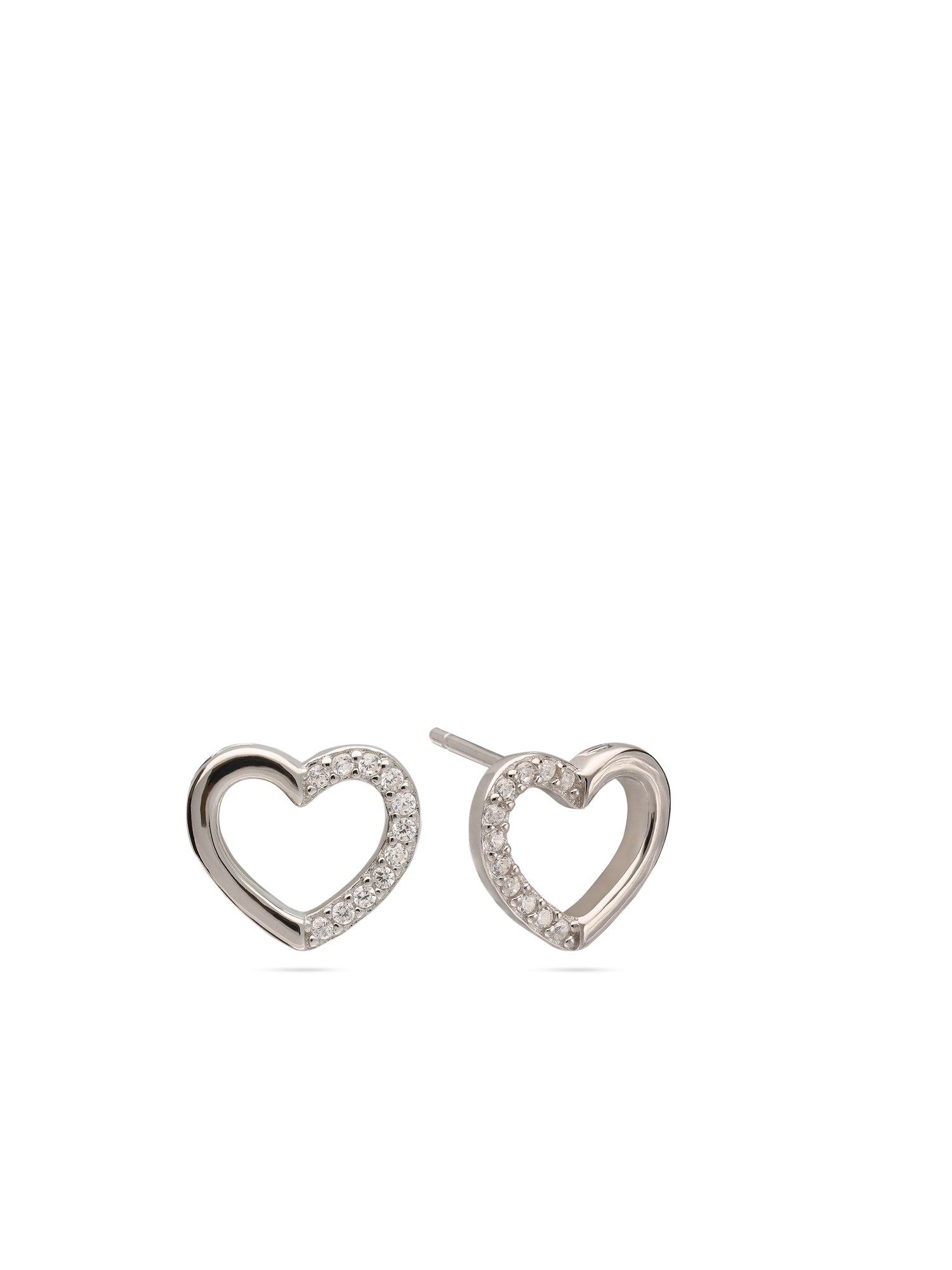 Tuerca, Plata 925 bañada en rodio, Zirconia cúbica artificial, Claro, Corazón, Artificial, Color plateado, longitud del pendiente: 0.9 cm, ancho del pendiente: 0.9 cm, 1.30 g