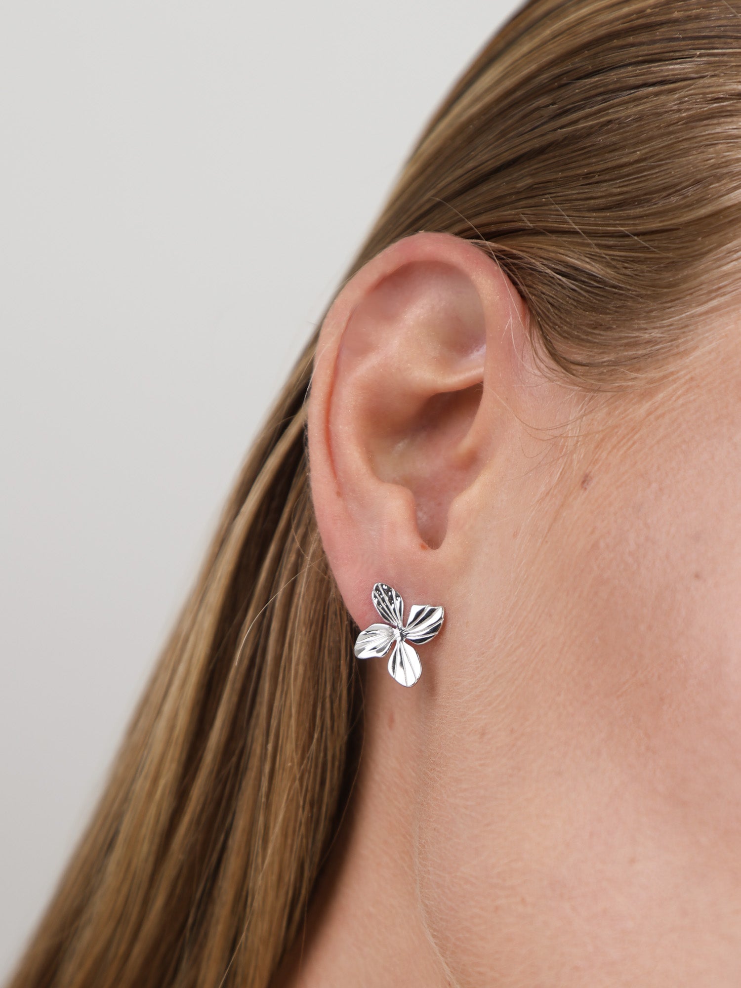 Tuerca, Plata 925 bañada en rodio, Sin piedra, Sin color, Flor, Color plateado, longitud del pendiente: 1.6 cm, ancho del pendiente: 1.5 cm, 1.80 g