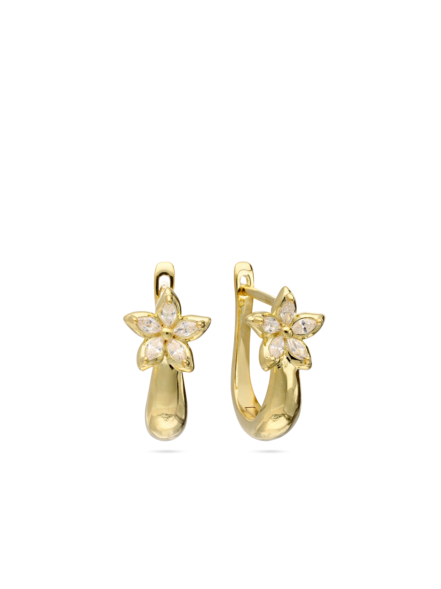 Aros, Bañado en oro, Zirconia cúbica artificial, Claro, Flor, Artificial, Color dorado, longitud del pendiente: 1.6 cm, ancho del pendiente: 0.8 cm, 2.66 g