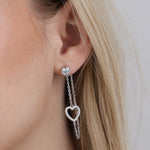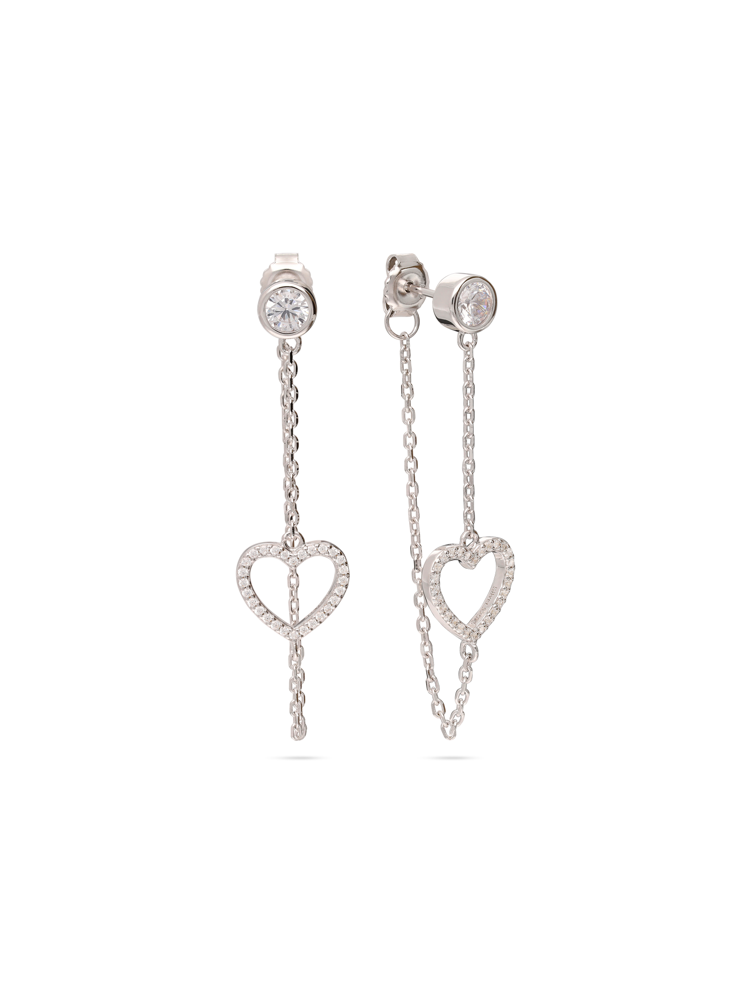 Gotas, Plata 925 bañada en rodio, Zirconia cúbica artificial, Claro, Corazón, Artificial, Color plateado, longitud del pendiente: 5.0 cm, ancho del pendiente: 1.2 cm, 4.22 g