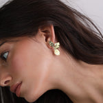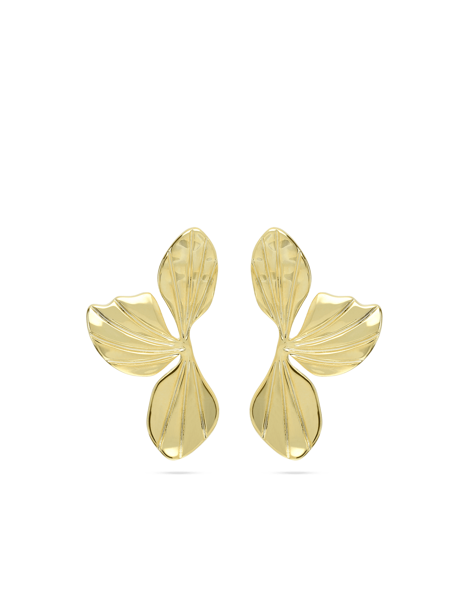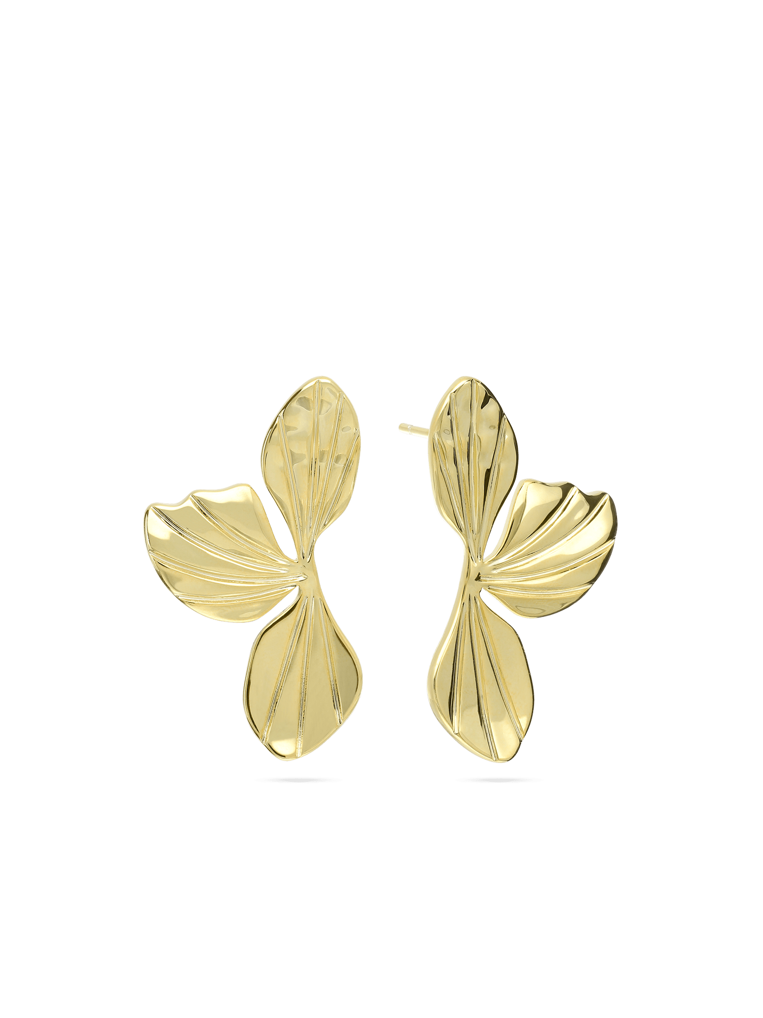 Tuerca, Bañado en oro, Sin piedra, Sin color, Flor, Color dorado, longitud del pendiente: 3.4 cm, ancho del pendiente: 2.0 cm, 6.67 g