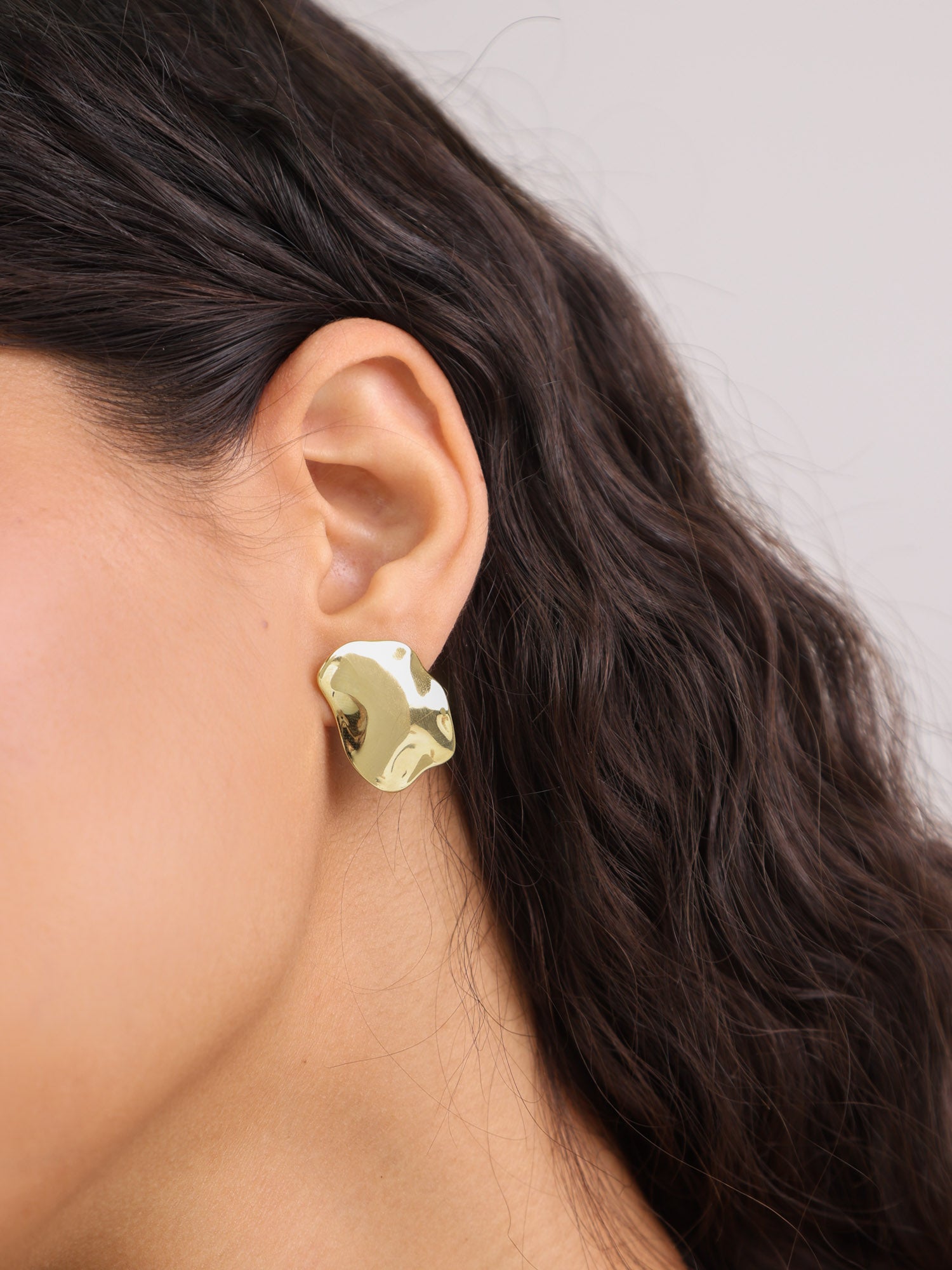 Tuerca, Bañado en oro, Sin piedra, Sin color, Forma no específica, Color dorado, longitud del pendiente: 2.4 cm, ancho del pendiente: 1.7 cm, 4.52 g