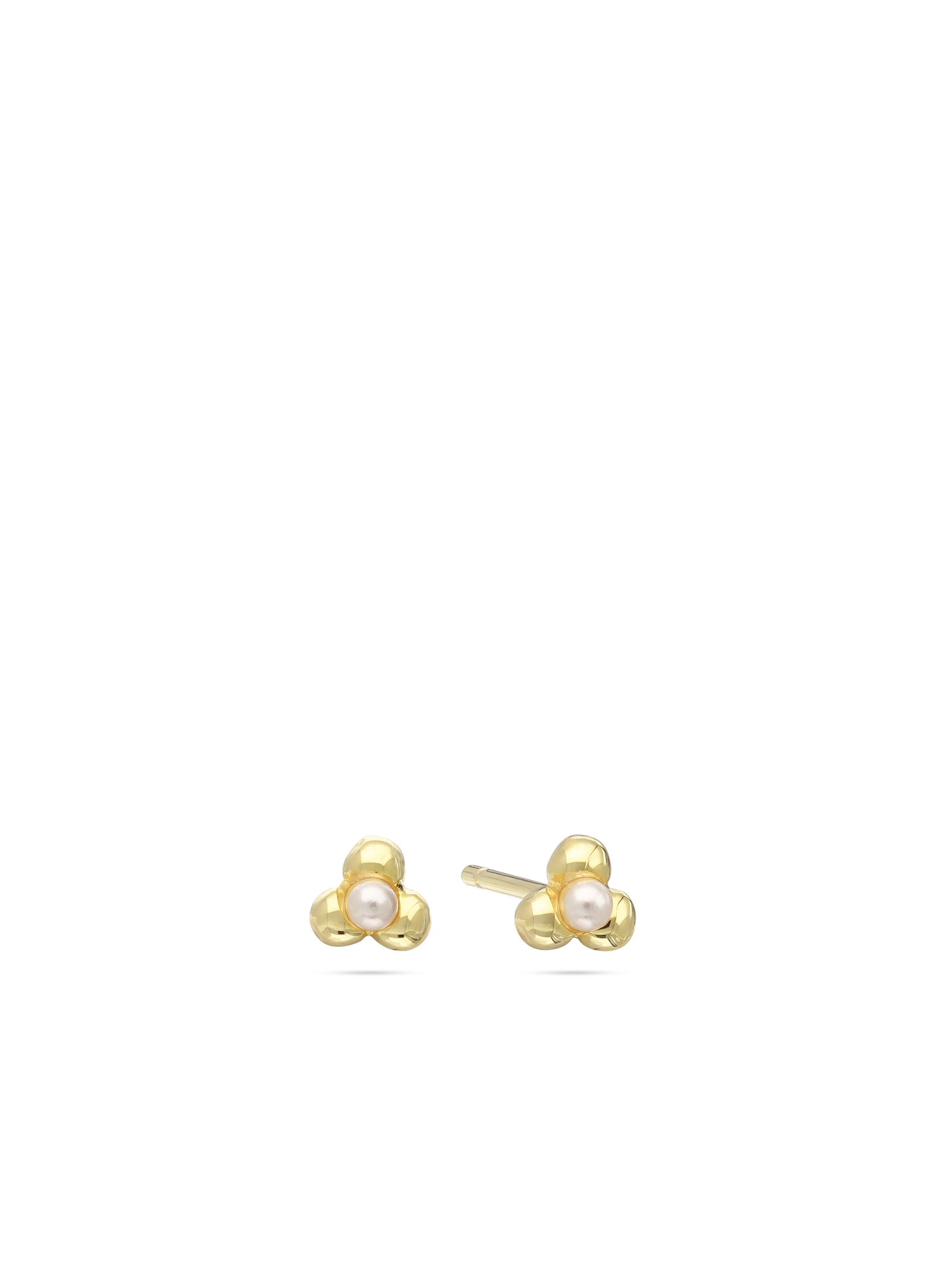Tuerca, Bañado en oro, Madreperla artificial, Blanco, Flor, Artificial, Color dorado, longitud del pendiente: 0.4 cm, ancho del pendiente: 0.4 cm, 1.08 g