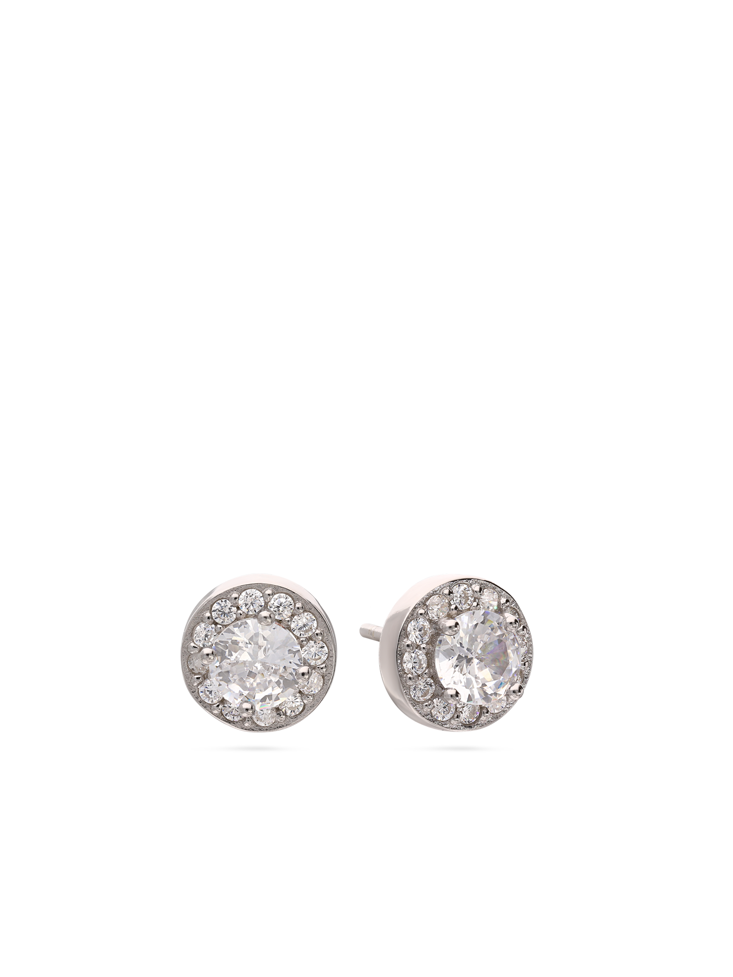 Tuerca, Plata 925 bañada en rodio, Zirconia cúbica artificial, Claro, Círculo, Artificial, Color plateado, ancho del pendiente: 0.8 cm, 2.48 g