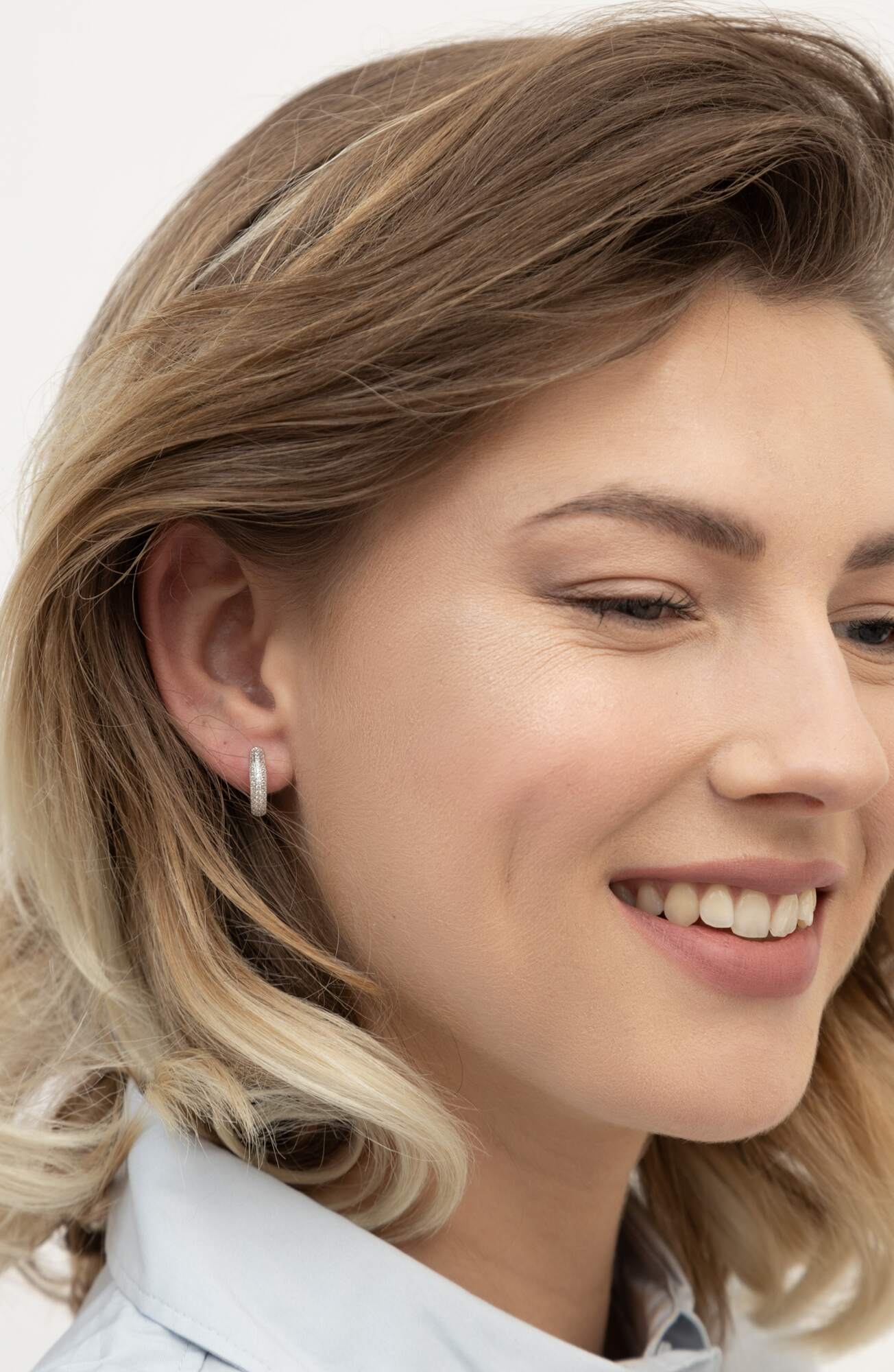 Aros, Plata 925 bañada en rodio, Zirconia cúbica artificial, Claro, Círculo, Artificial, Color plateado, Diámetro de los aros: 1.3 cm, 2.28 g