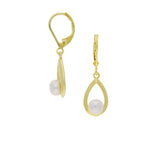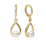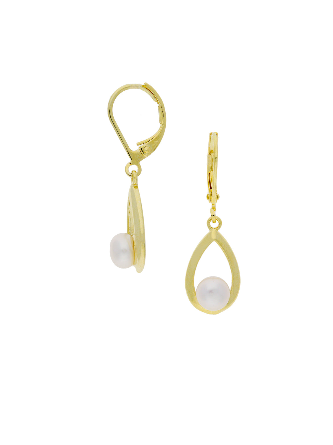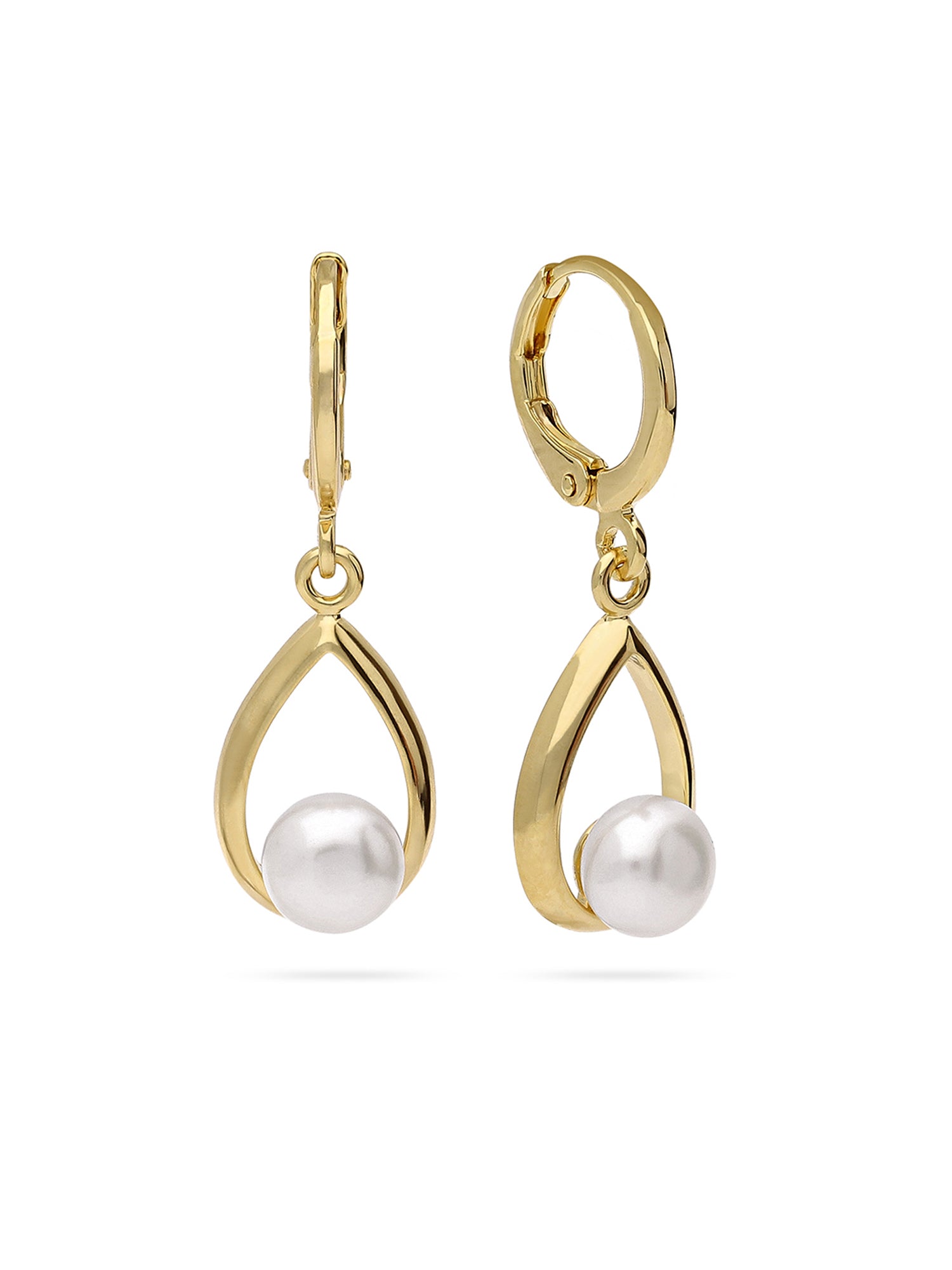 Gotas, Bañado en oro, Perla cultivada, Blanco, Lágrima, Color dorado, longitud del pendiente: 3.0 cm, ancho del pendiente: 1.0 cm, 2.49 g