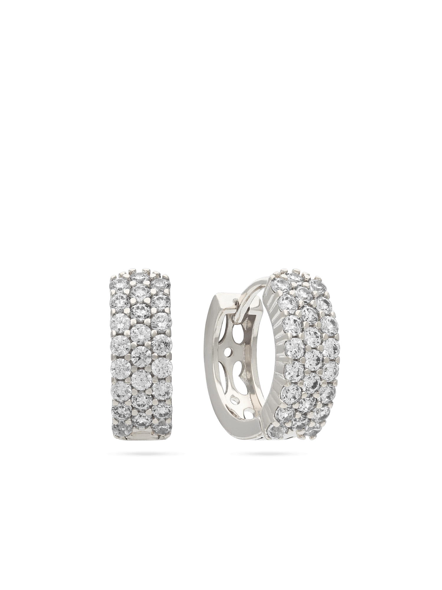 Aros, Plata 925 bañada en rodio, Zirconia cúbica artificial, Claro, Círculo, Artificial, Color plateado, Diámetro de los aros: 1.5 cm, 3.28 g