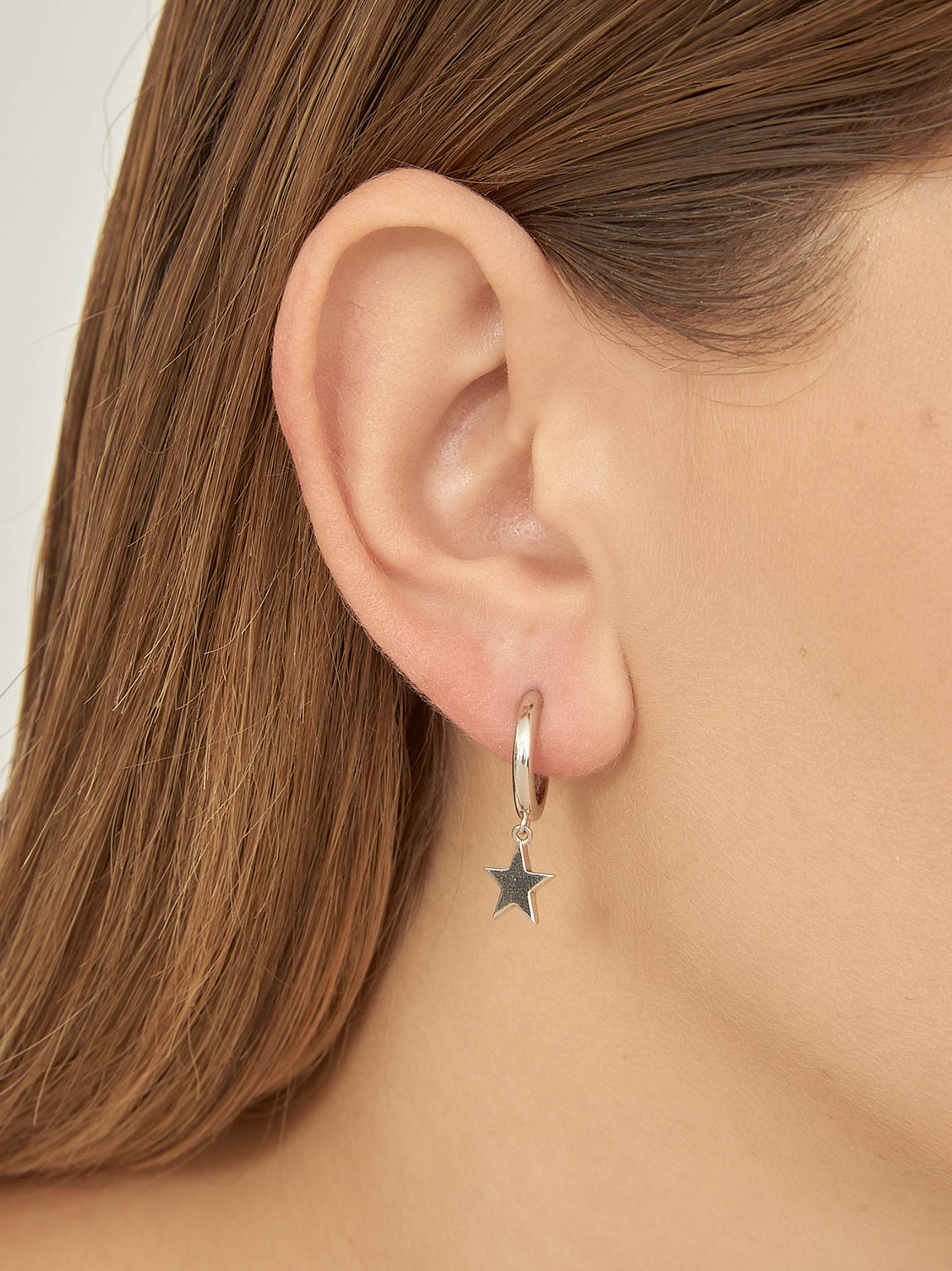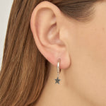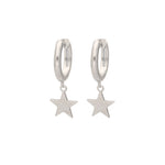 Aros, Plata 925 bañada en rodio, Sin piedra, Sin color, Estrella, Color plateado, Diámetro de los aros: 1.3 cm, 3.00 g