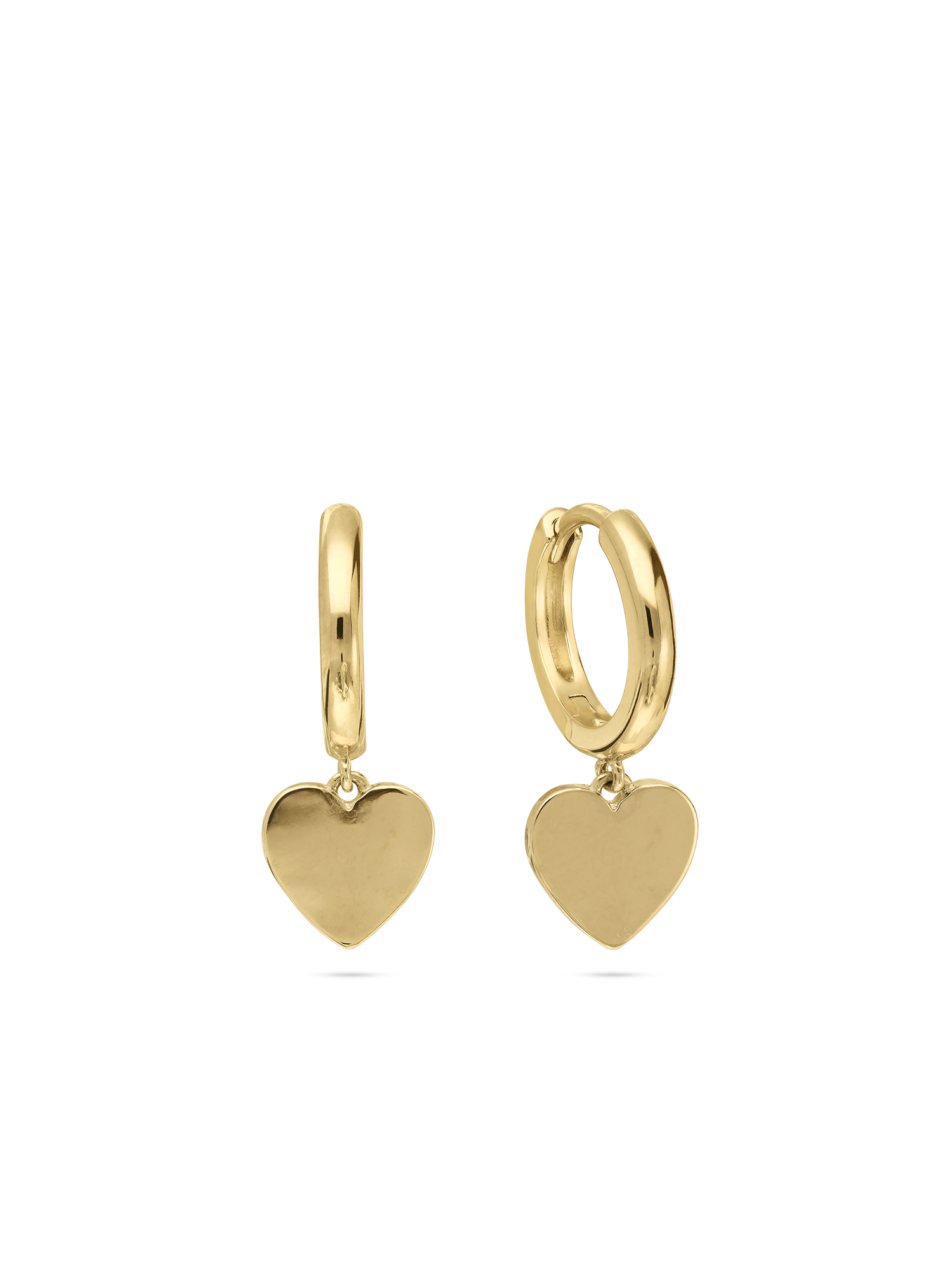 Aros, Bañado en oro, Sin piedra, Sin color, Corazón, Color dorado, longitud del pendiente: 2.5 cm, ancho del pendiente: 1.0 cm, 3.13 g
