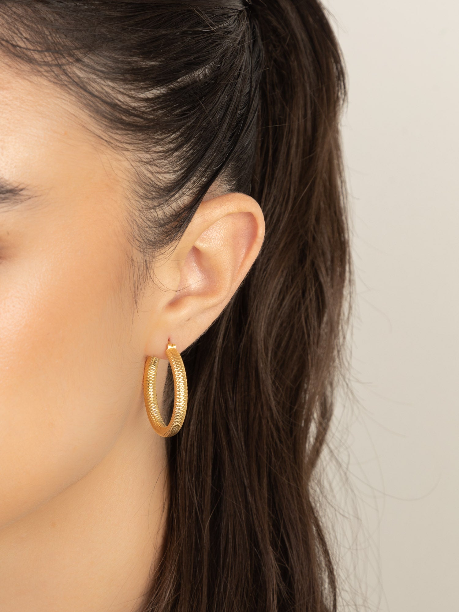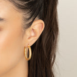 Aros, Bañado en oro, Sin piedra, Sin color, Círculo, Color dorado, longitud del pendiente: 3.2 cm, ancho del pendiente: 0.4 cm, 5.58 g