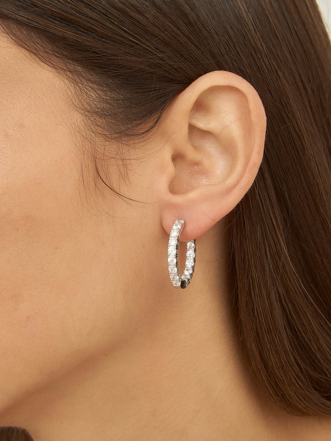 Aros, Plata 925 bañada en rodio, Zirconia cúbica artificial