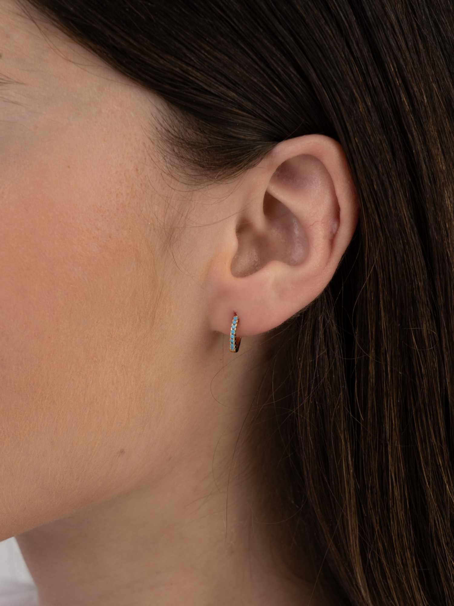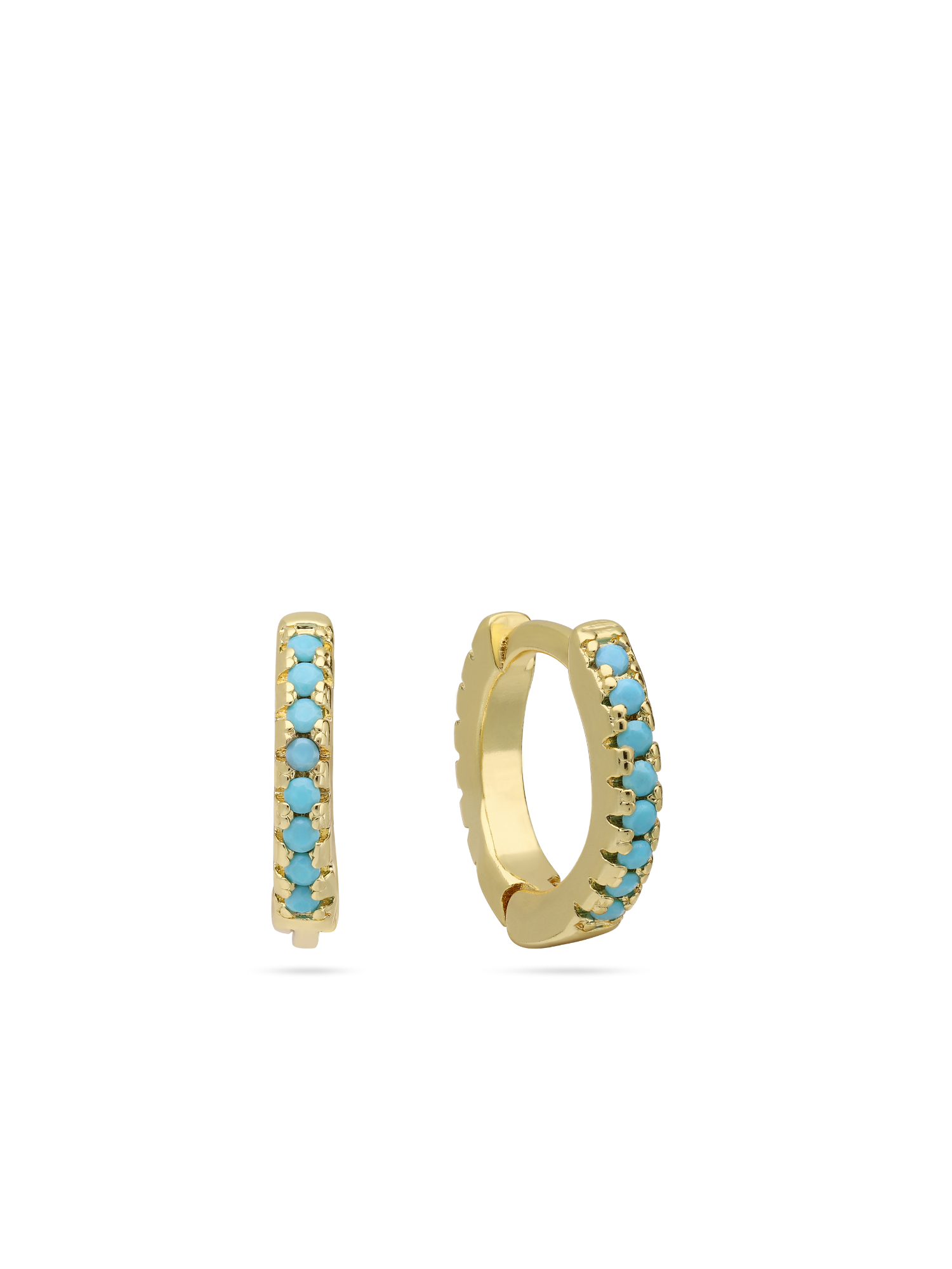 Aros, Bañado en oro, Zirconia cúbica artificial, Celeste, Círculo, Artificial, Color dorado, longitud del pendiente: 1.0 cm, ancho del pendiente: 0.2 cm, 1.40 g