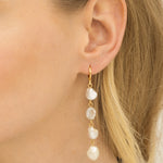 Gotas, Bañado en oro, Perla cultivada, Blanco, Forma no específica, Color dorado, longitud del pendiente: 6.0 cm, ancho del pendiente: 1.0 cm, 7.70 g