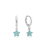 Aros, Plata 925 bañada en rodio, Zirconia cúbica artificial, Celeste, Flor, Artificial, Color plateado, longitud del pendiente: 2.0 cm, ancho del pendiente: 0.7 cm, 2.17 g