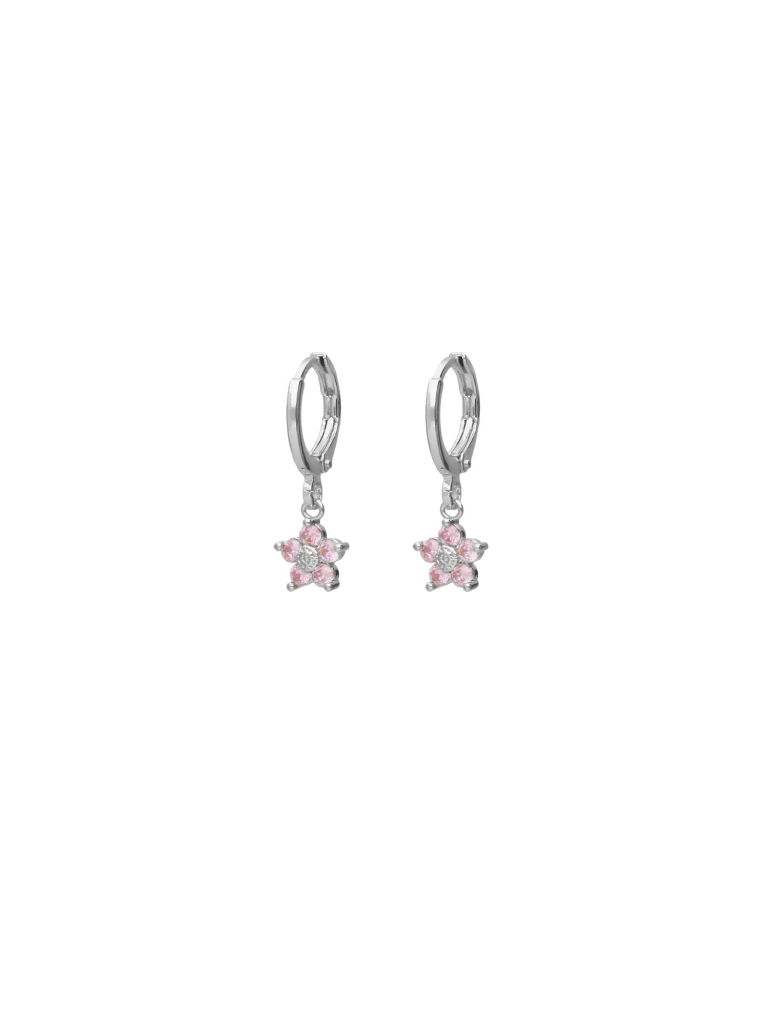 Aros, Plata 925 bañada en rodio, Zirconia cúbica artificial, Rosado, Flor, Artificial, Color plateado, longitud del pendiente: 2.0 cm, ancho del pendiente: 0.7 cm, 1.88 g