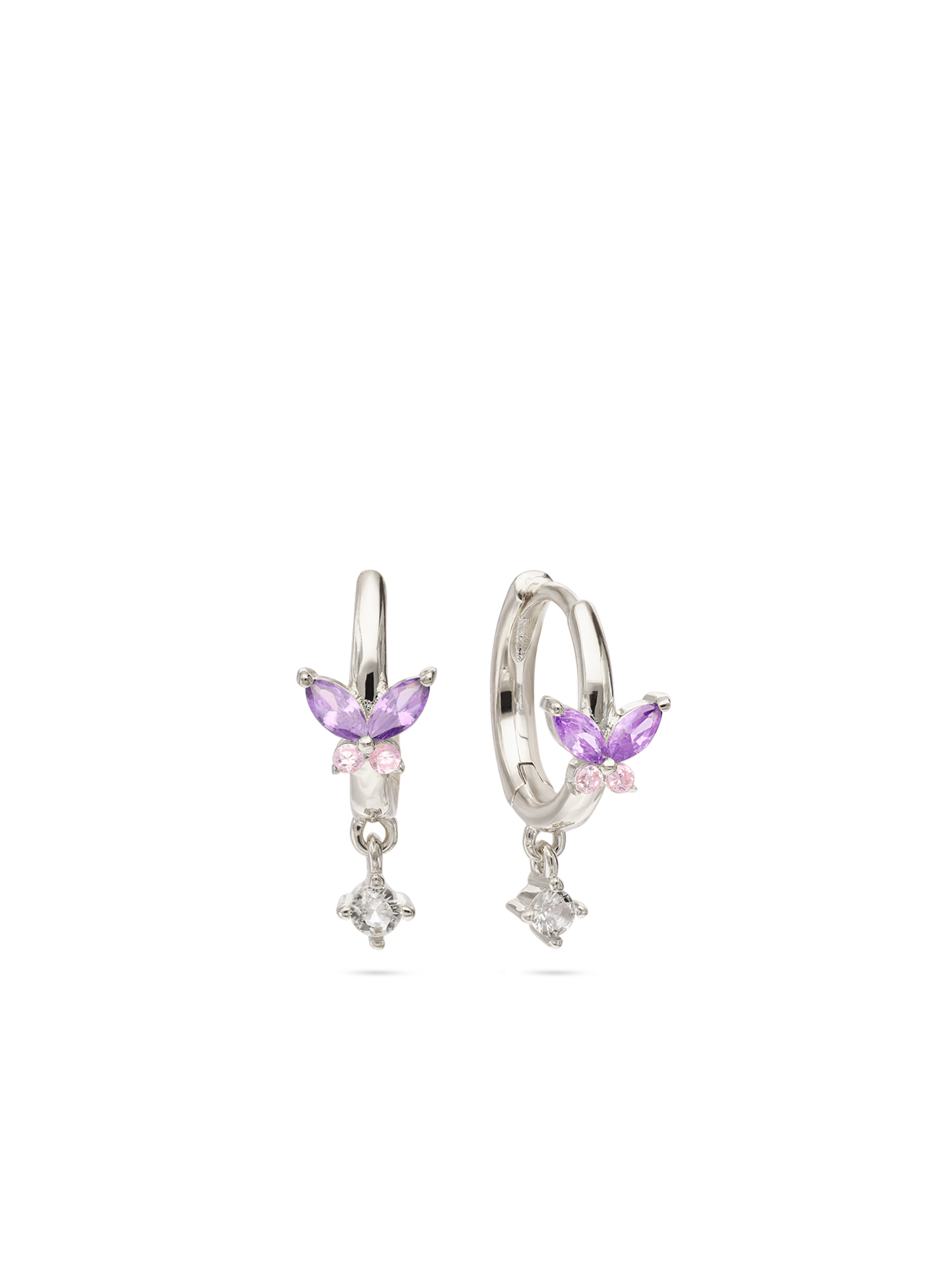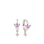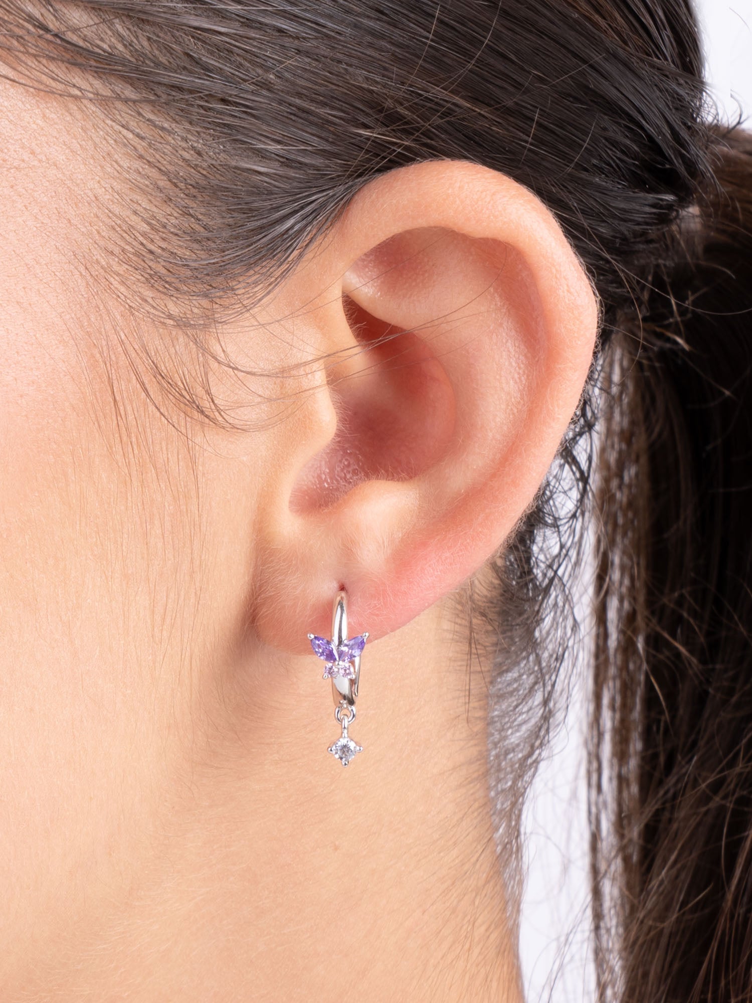 Aros, Plata 925 bañada en rodio, Zirconia cúbica artificial, Multicolor, Mariposa, Artificial, Color plateado, longitud del pendiente: 1.9 cm, ancho del pendiente: 0.6 cm, 2.81 g