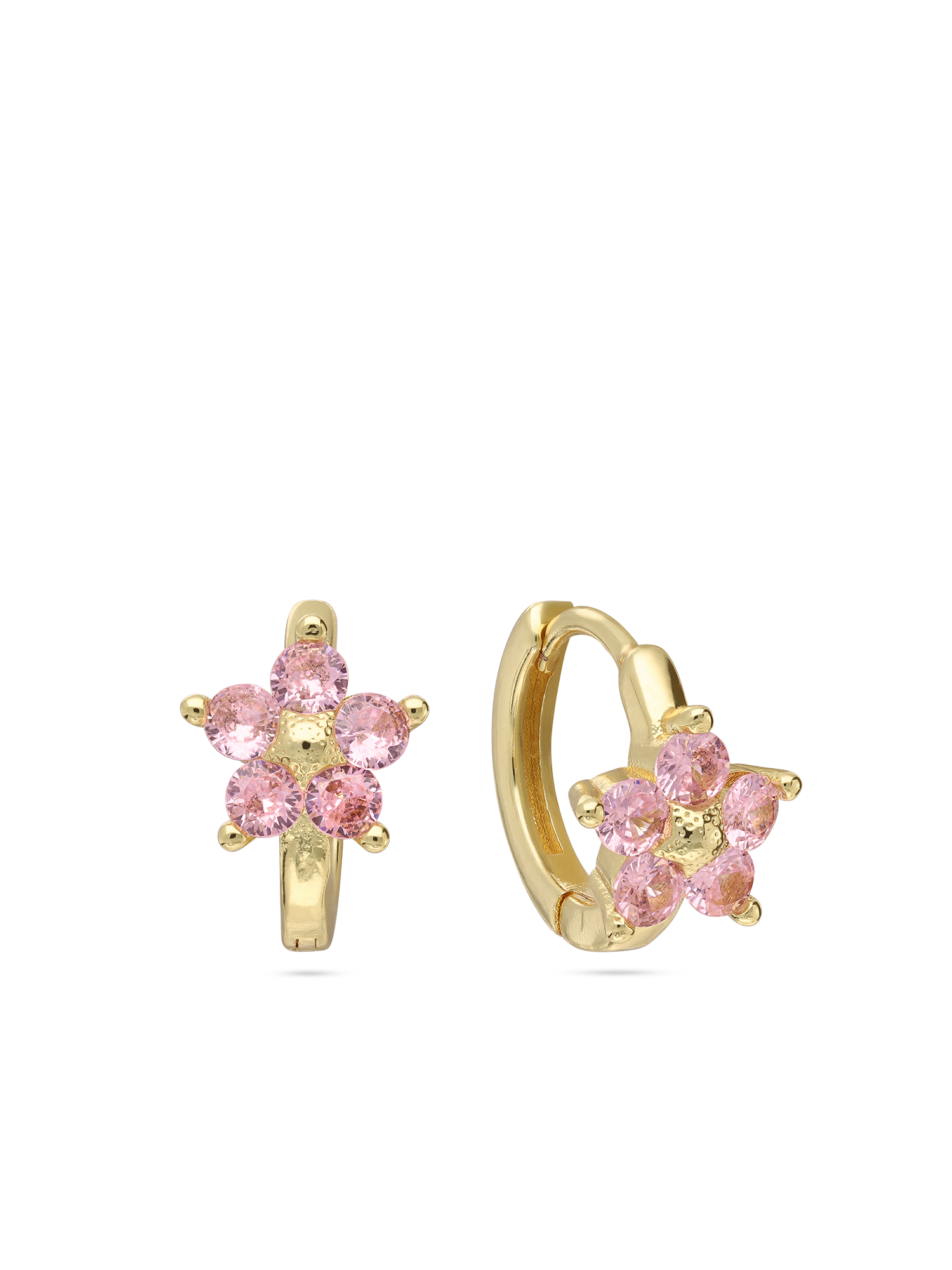 Aros, Bañado en oro, Zirconia cúbica artificial, Rosado, Flor, Artificial, Color dorado, longitud del pendiente: 1.2 cm, ancho del pendiente: 0.8 cm, 2.33 g