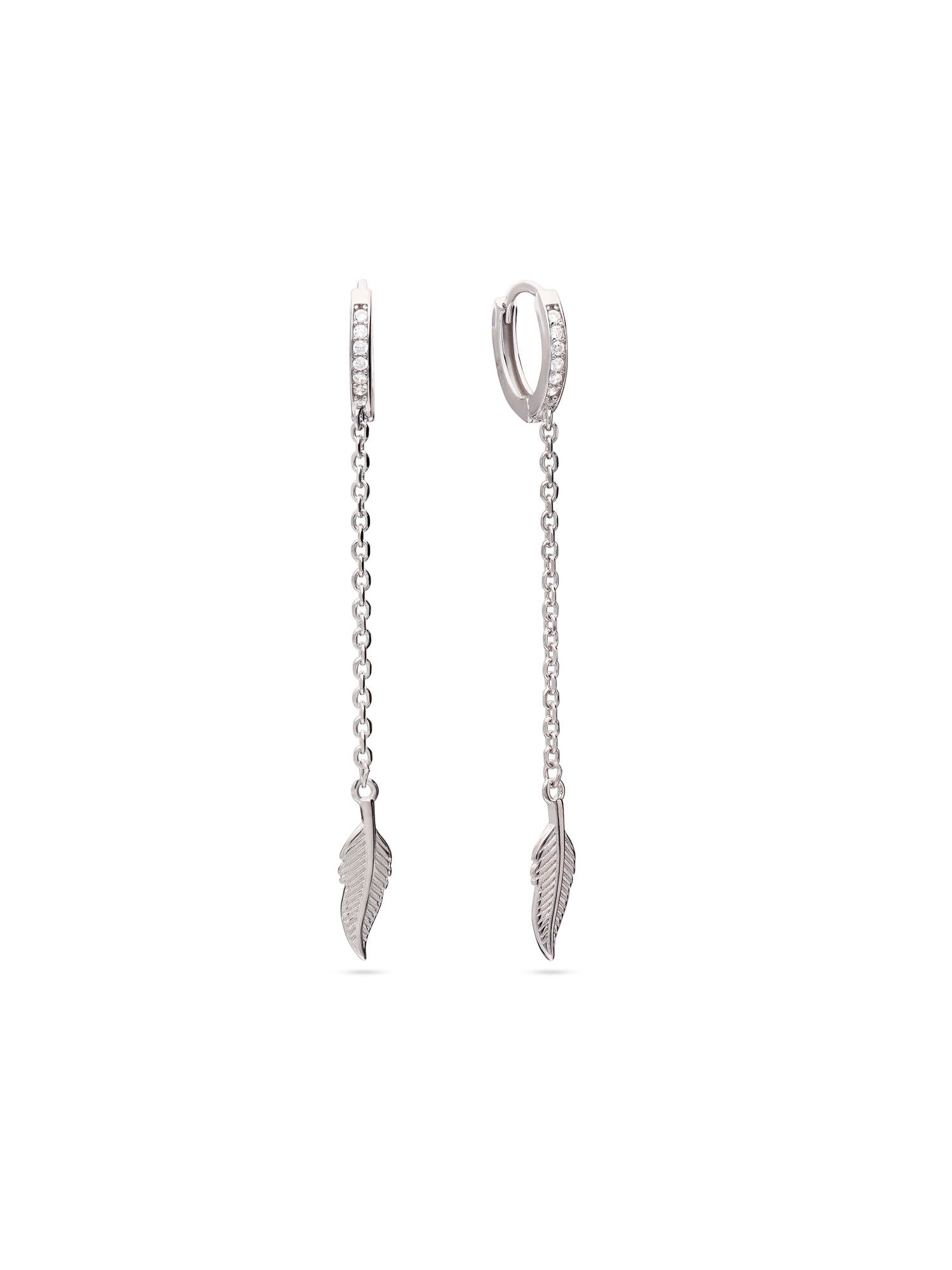 Gotas, Plata 925 bañada en rodio, Sin piedra, Sin color, Pluma, Color plateado, ancho del pendiente: 1.2 cm, longitud del pendiente: 5.2 cm, 2.29 g