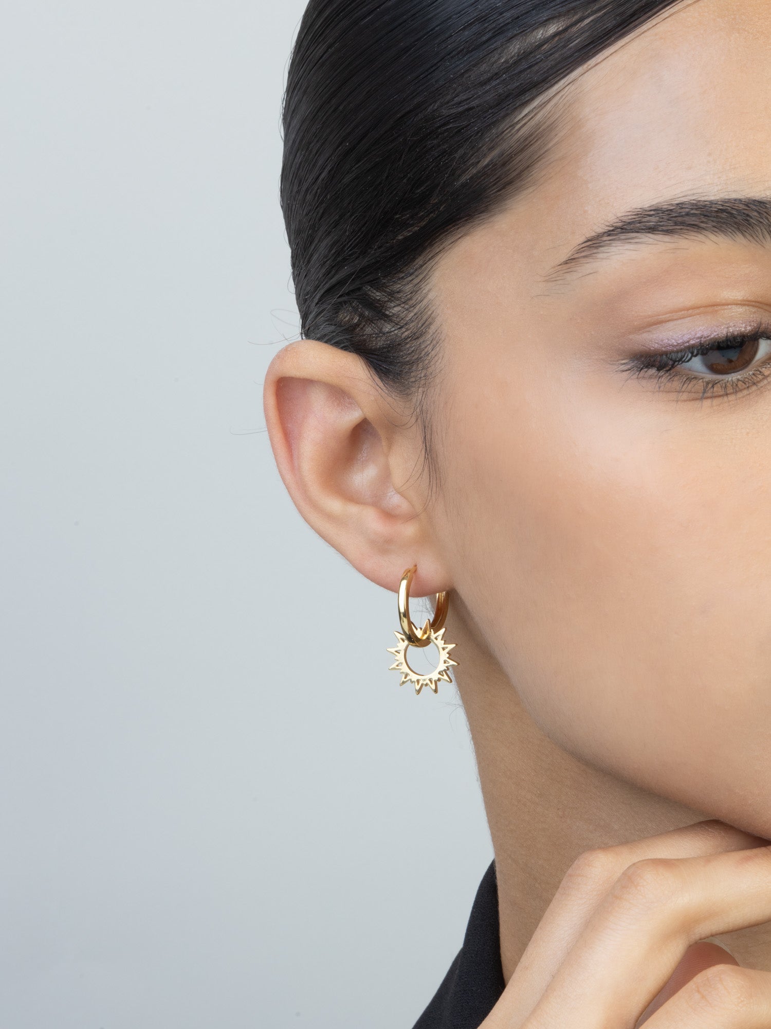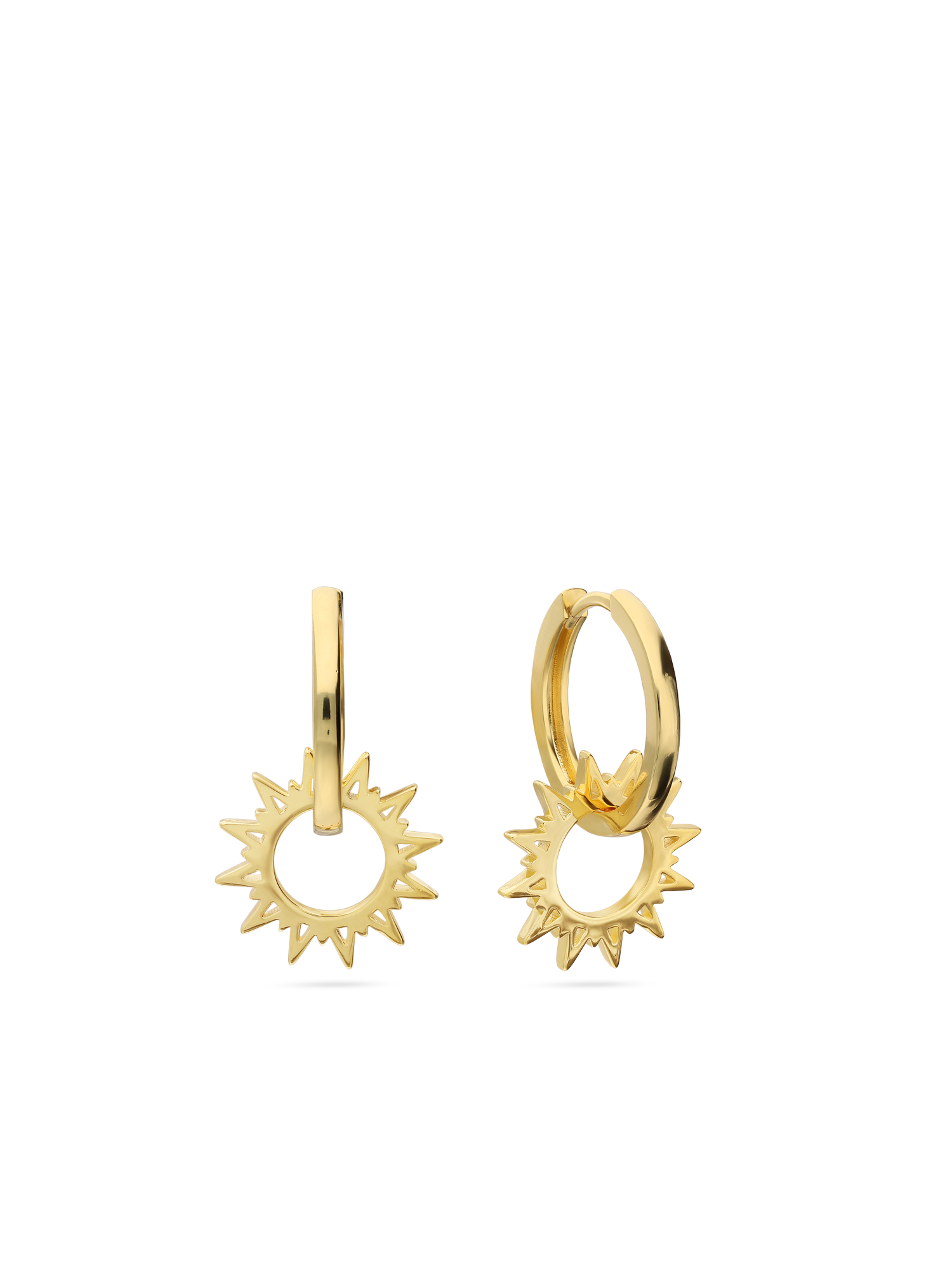 Aros, Bañado en oro, Sin piedra, Sin color, Sol, Color dorado, longitud del pendiente: 2.5 cm, ancho del pendiente: 1.6 cm, 4.20 g