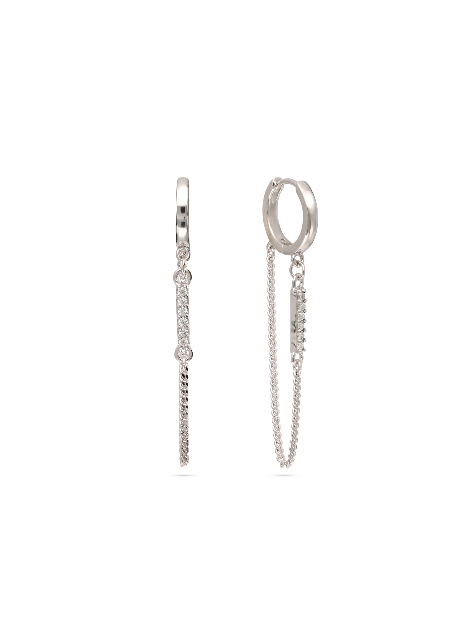 Aros, Plata 925 bañada en rodio, Zirconia cúbica artificial, Claro, Forma no específica, Artificial, Color plateado, longitud del pendiente: 4.5 cm, ancho del pendiente: 0.2 cm, 3.24 g