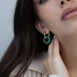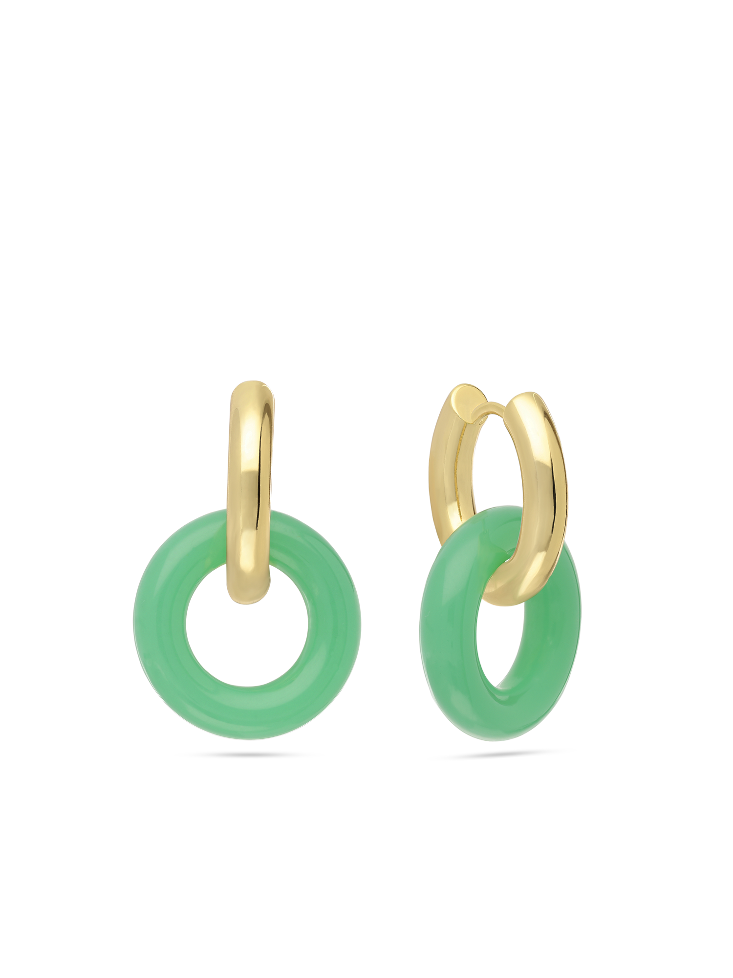 Aros, Bañado en oro, Polímero artificial, Verde, Círculo, Artificial, Color dorado, longitud del pendiente: 2.5 cm, ancho del pendiente: 0.5 cm, 10.44 g