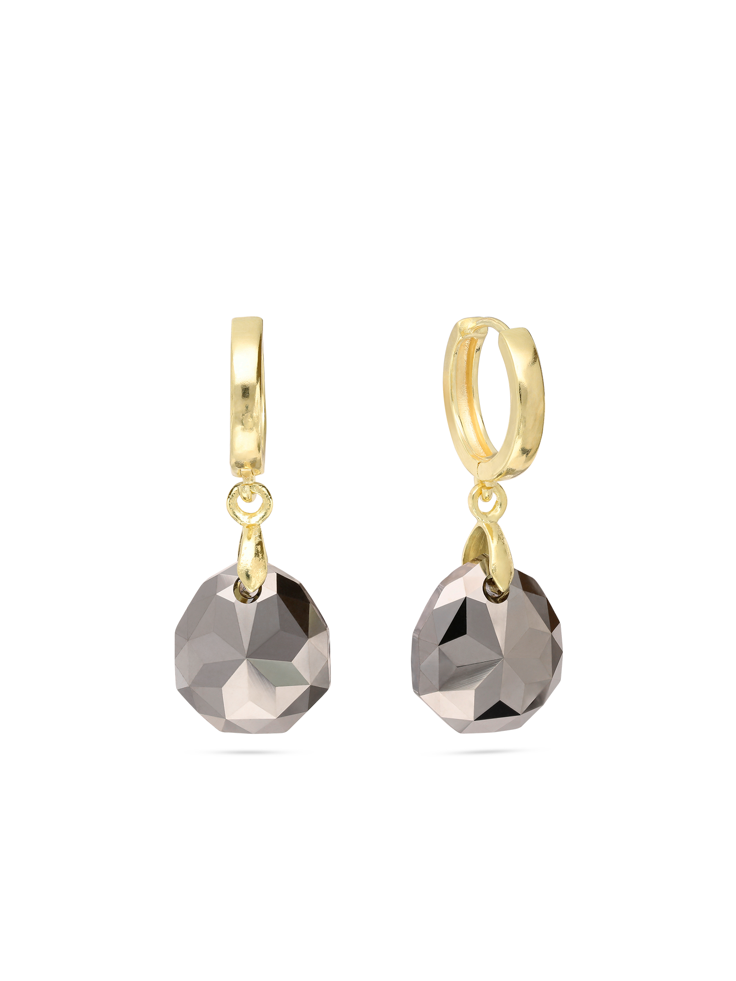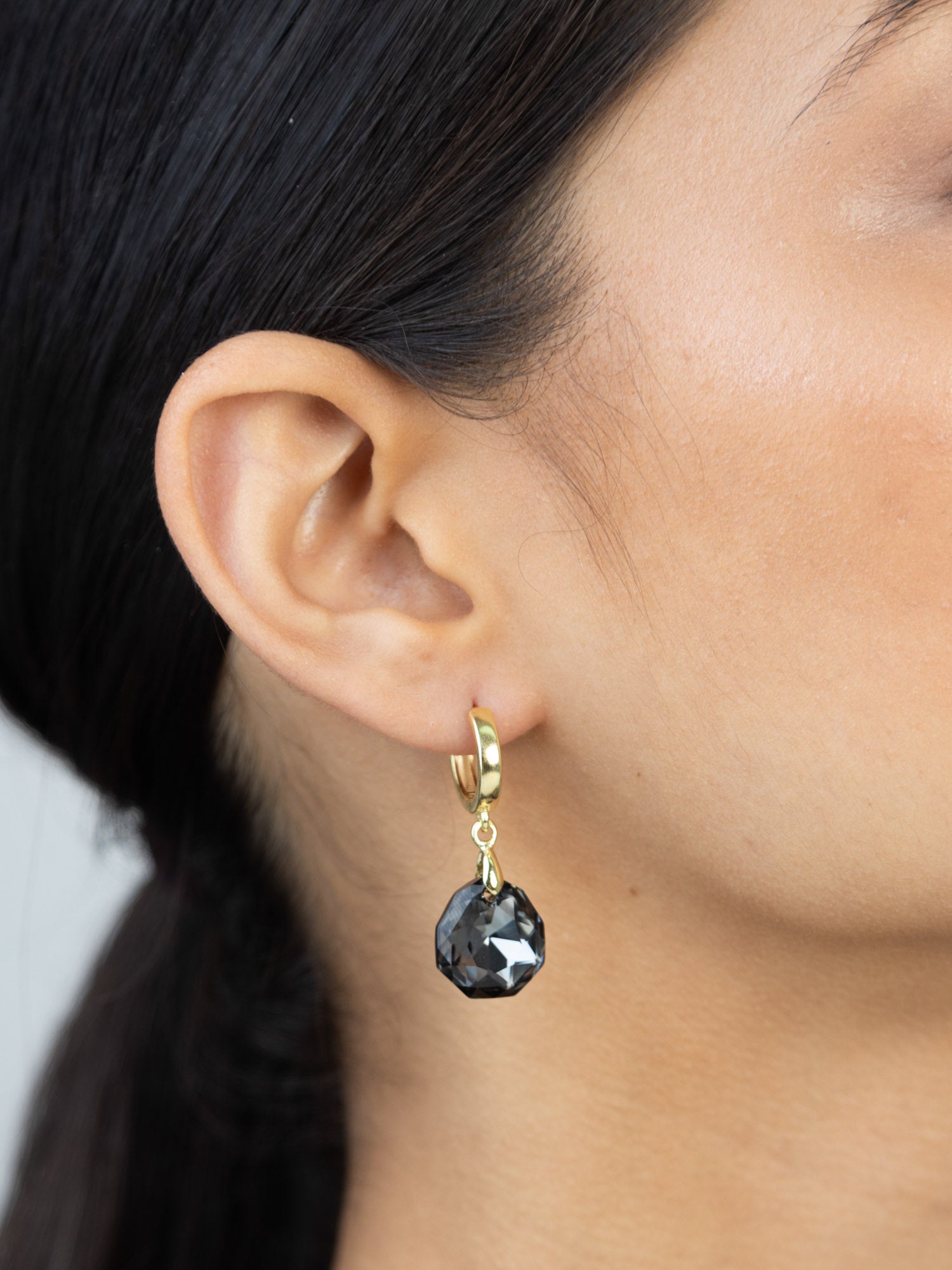 Aros, Bañado en oro, Vidrio de plomo, Negro, Círculo, Artificial, Color dorado, longitud del pendiente: 3.8 cm, ancho del pendiente: 1.4 cm, 7.10 g