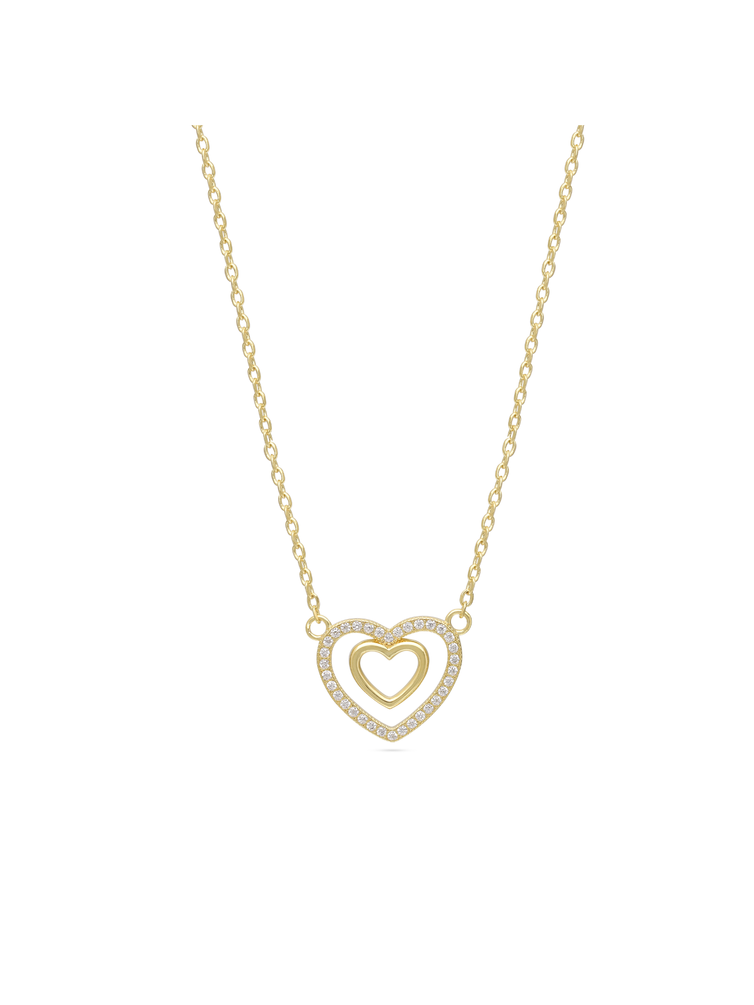 Collar colgante, Bañado en oro, Zirconia cúbica artificial, Claro, Corazón, Artificial, Color dorado, ancho colgante: 2.0 cm, longitud del colgante: 1.5 cm, 3.42 g