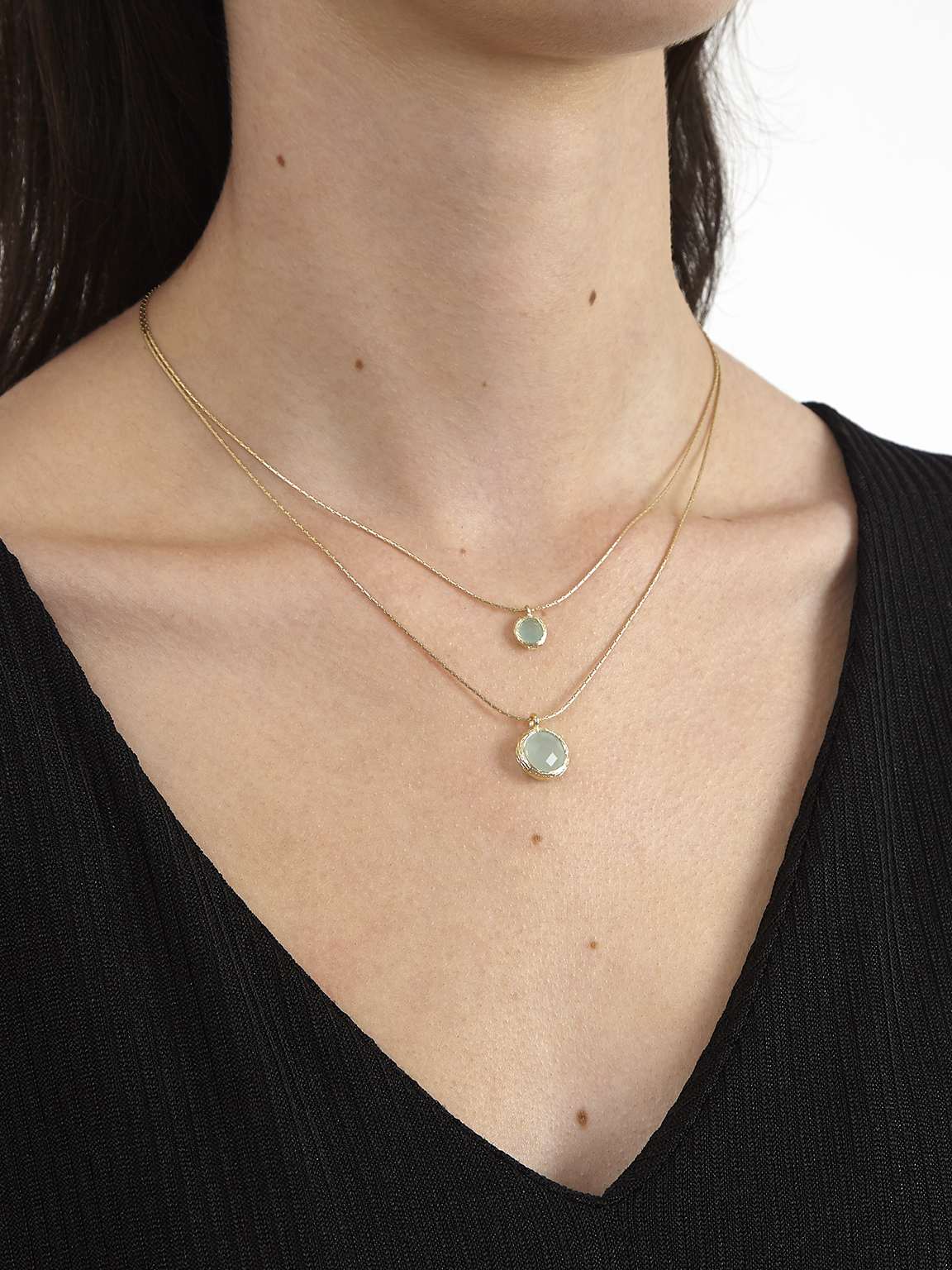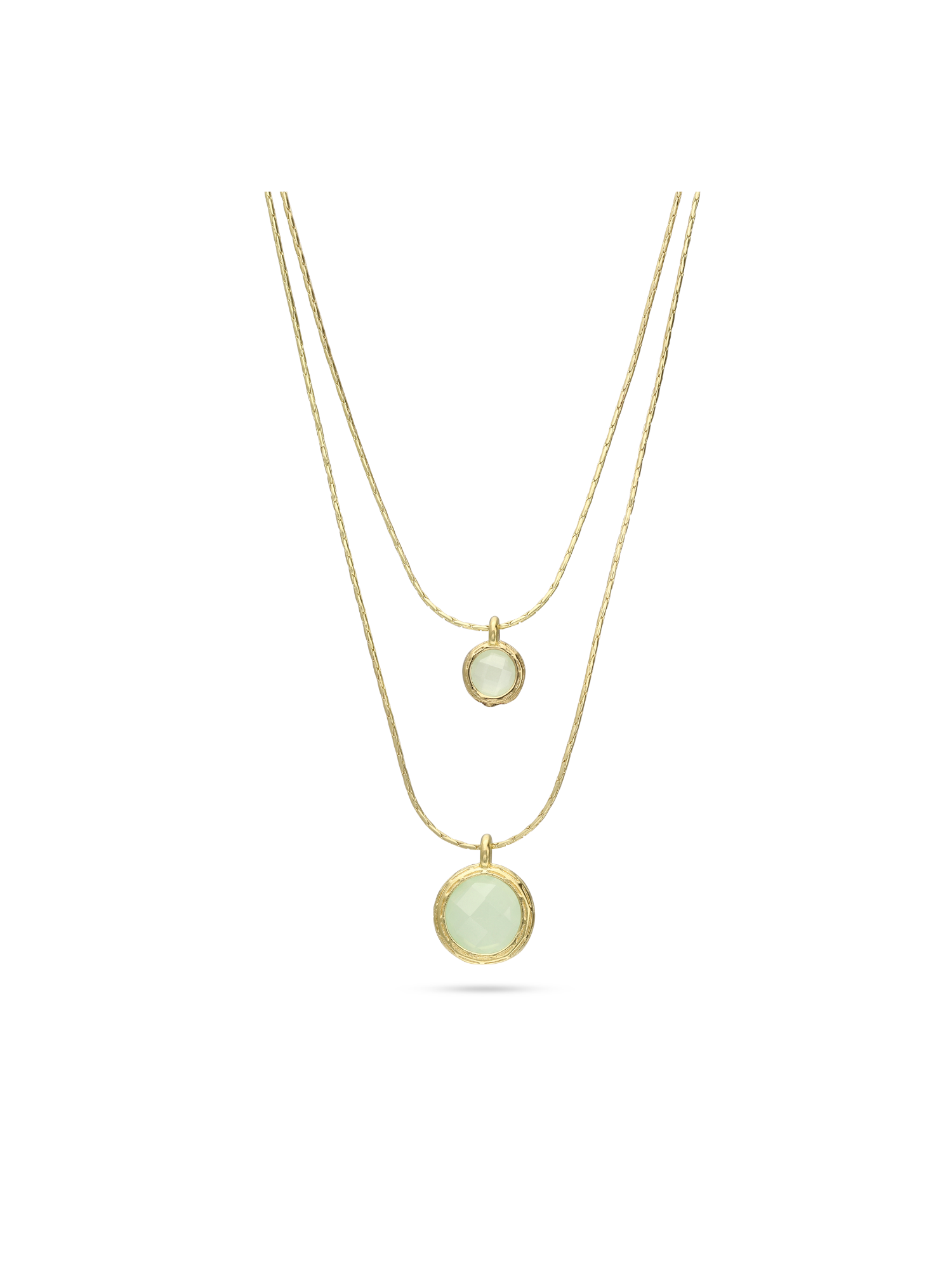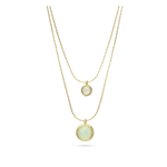 Cadena de capas, Bañado en oro, Vidrio de plomo, Verde, Círculo, Artificial, Color dorado, longitud del colgante: 1.2 cm, 4.97 g