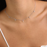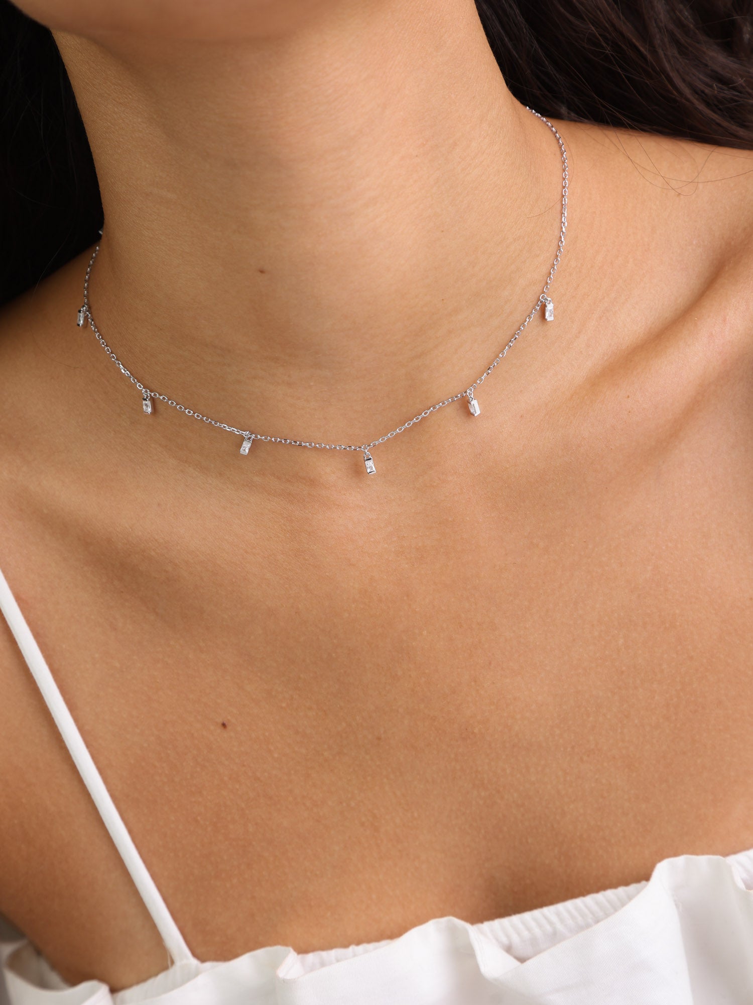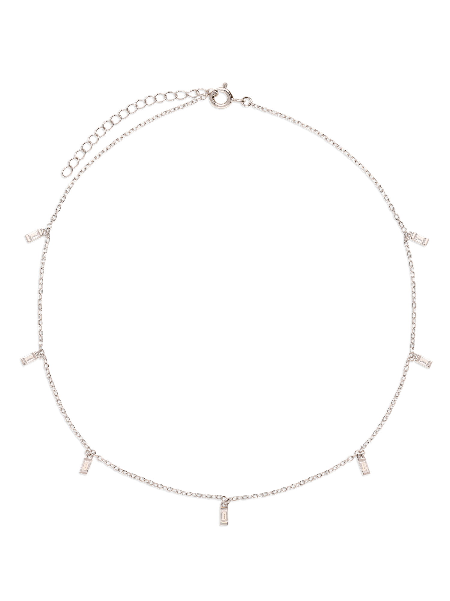 Collar gargantilla, Plata 925 bañada en rodio, Zirconia cúbica artificial, Claro, Cuadrado, Artificial, Color plateado, 2.49 g
