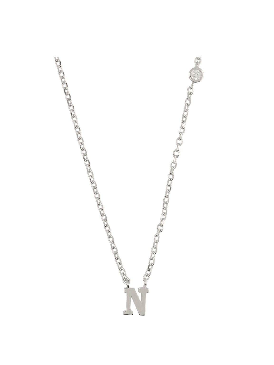 Collar colgante, Plata 925 bañada en rodio, Zirconia cúbica artificial, Claro, Círculo, Letra, Artificial, Color plateado, longitud del colgante: 0.7 cm, ancho colgante: 0.6 cm, 2.86 g