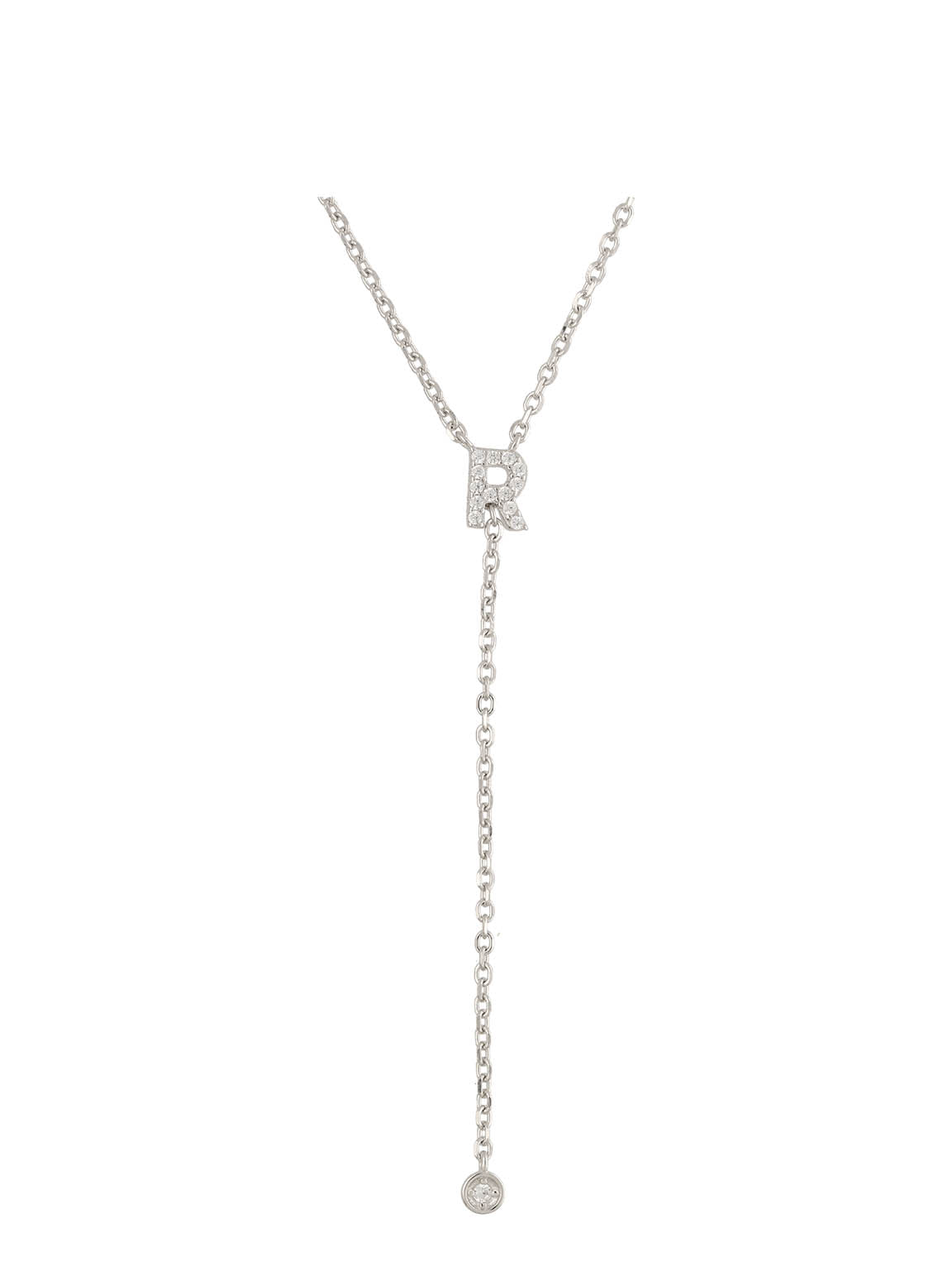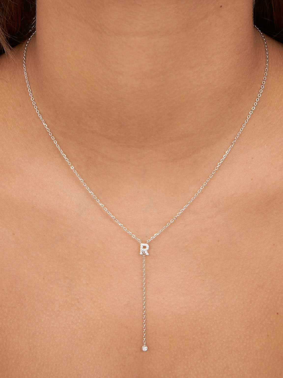 Collar colgante, Plata 925 bañada en rodio, Zirconia cúbica artificial, Claro, Círculo, Letra, Artificial, Color plateado, longitud del colgante: 6.0 cm, ancho colgante: 0.5 cm, 2.99 g