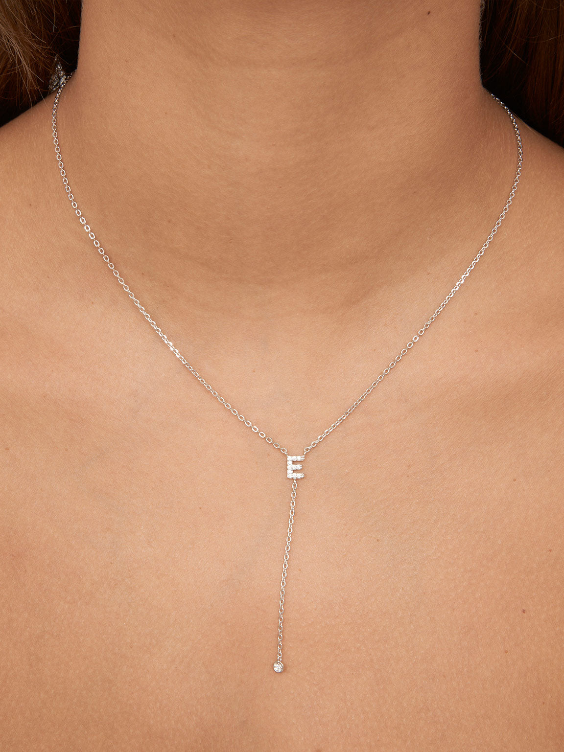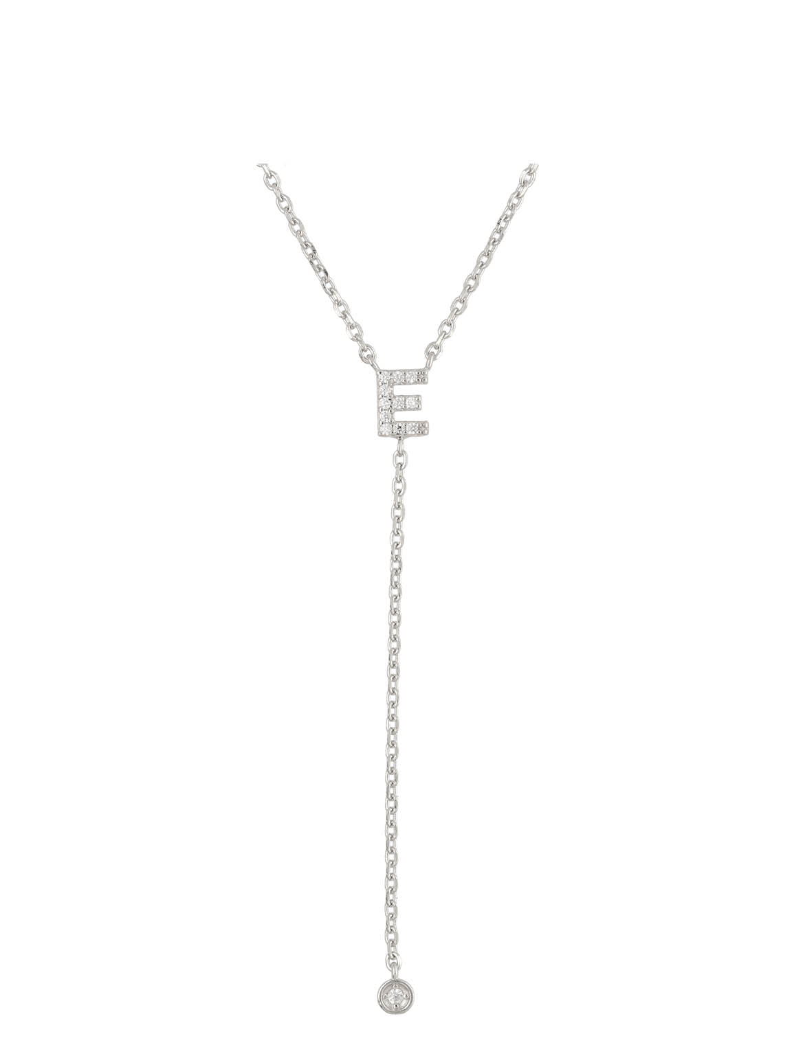 Collar colgante, Plata 925 bañada en rodio, Zirconia cúbica artificial, Claro, Círculo, Letra, Artificial, Color plateado, longitud del colgante: 6.0 cm, ancho colgante: 0.5 cm, 3.15 g